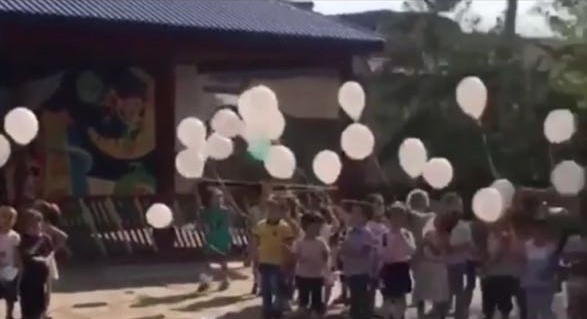 Кульминацией мероприятия было отпускание в небо бумажных голубей, изготовленных дошкольниками с помощью родителей и педагогов-воспитателей.