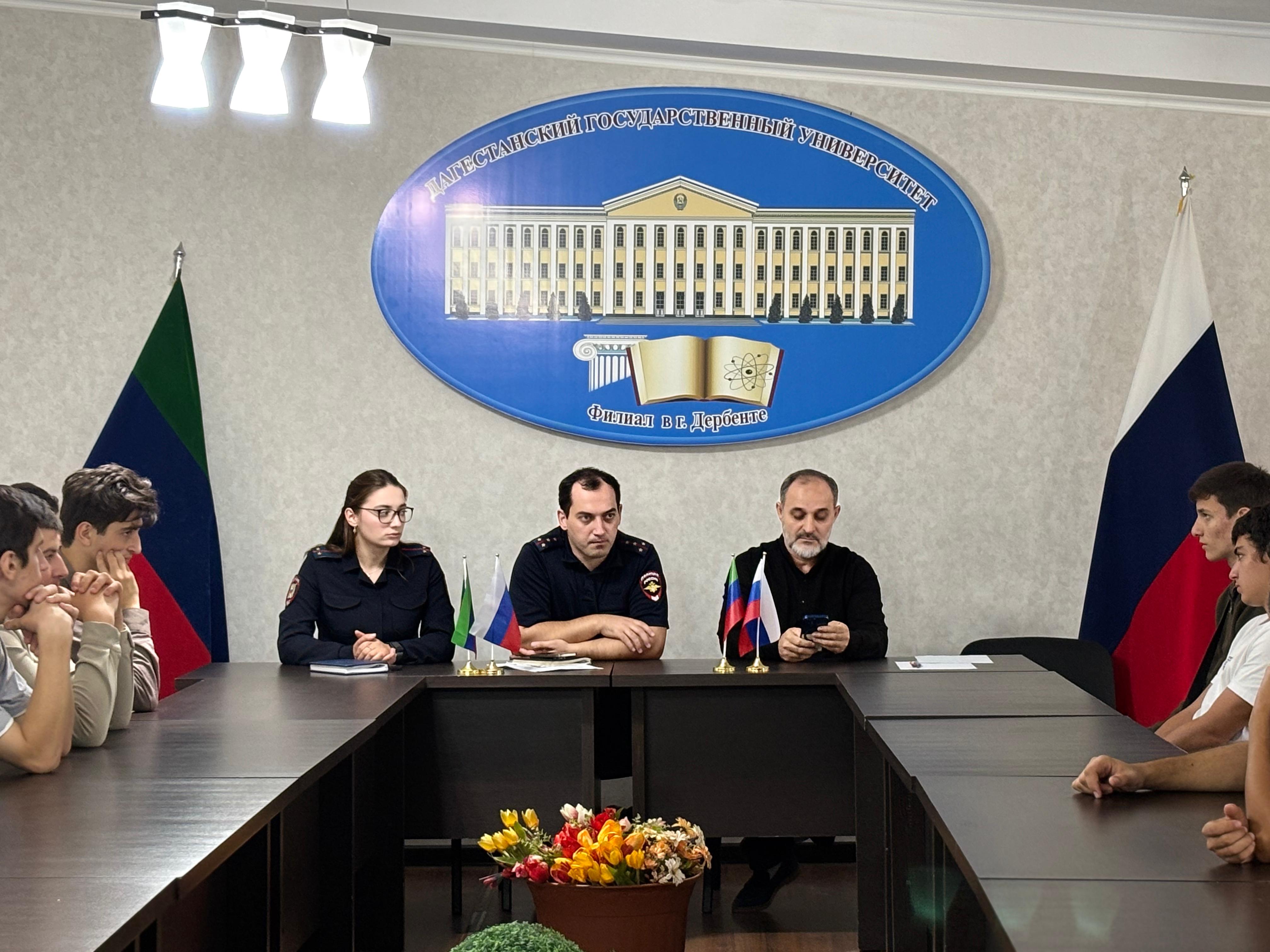 Сегодня, 16 сентября, на площадке филиала Дагестанского государственного университета в г.Дербенте состоялось мероприятие на тему "Профилактика и противодействие террористическим, неонацистским угрозам в молодежной среде".