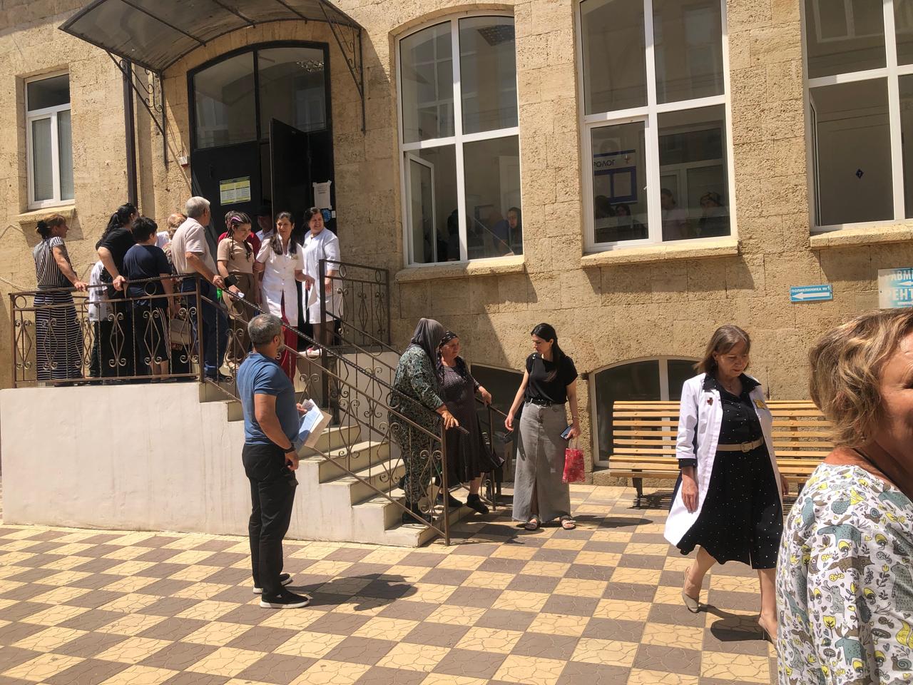 Учебная тренировка по эвакуации в случаях землетрясений в ГБУ РД «Дербентская ЦГБ» (Поликлиника №1)
