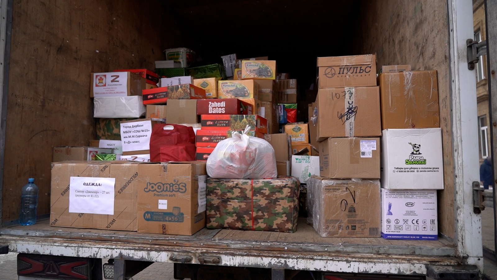 Начальник отдела молодежной политики и спорта администрации Дербента Денис Русиков отметил, что матери погибших участников специальной военной операции, ссузы, вузы, школы города Дербента и предприниматели приняли активное участие в сборе гуманитарной помощи.