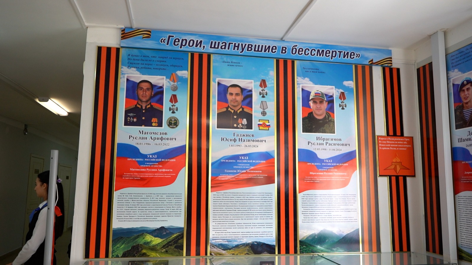 Сегодня, 6 мая, в стенах школы №12 имени Н. Казиахмедова состоялось торжественное открытие музея Памяти и Славы, посвященного памяти выпускников, героически погибших в зоне специальной военной операции. Экспозиция увековечивает имена Руслана Магомедова, Юсифа Гаджиева, Руслана Ибрагимова и Шамиля Девришева.