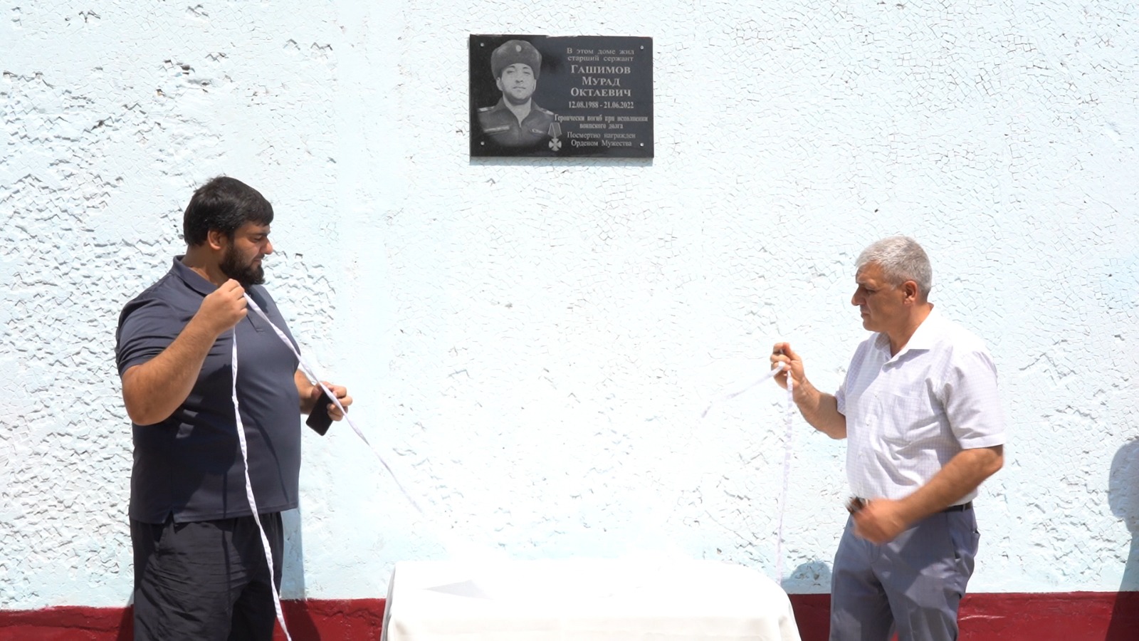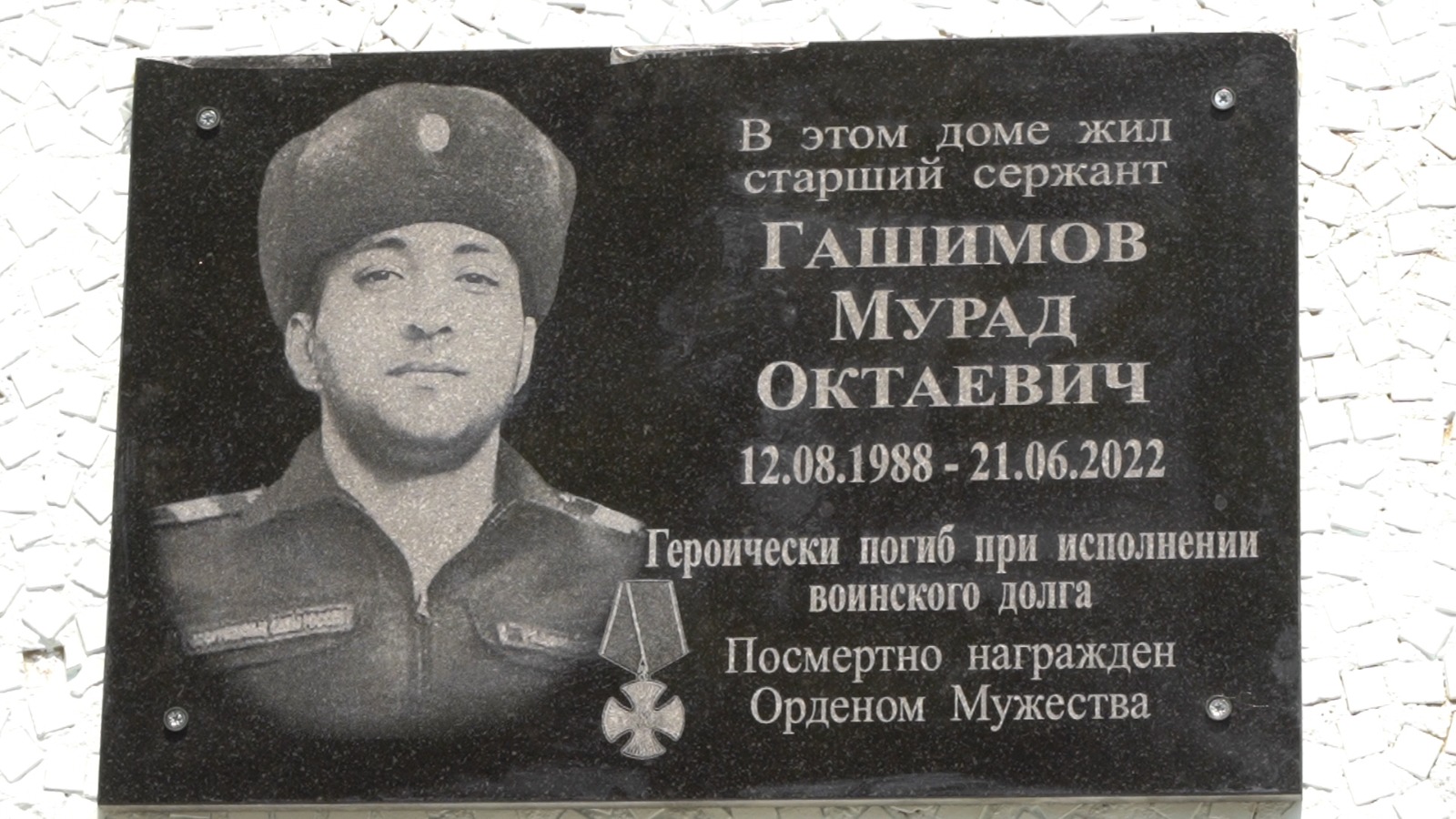Сегодня, 25 июля, в Дербенте состоялось открытие мемориальной доски кавалеру ордена Мужества Гашимову Мураду Октаевичу, погибшему в ходе специальной военной операции. Памятный мемориал установлен на фасаде дома по улице Расулбекова, 14 , где жил герой.
