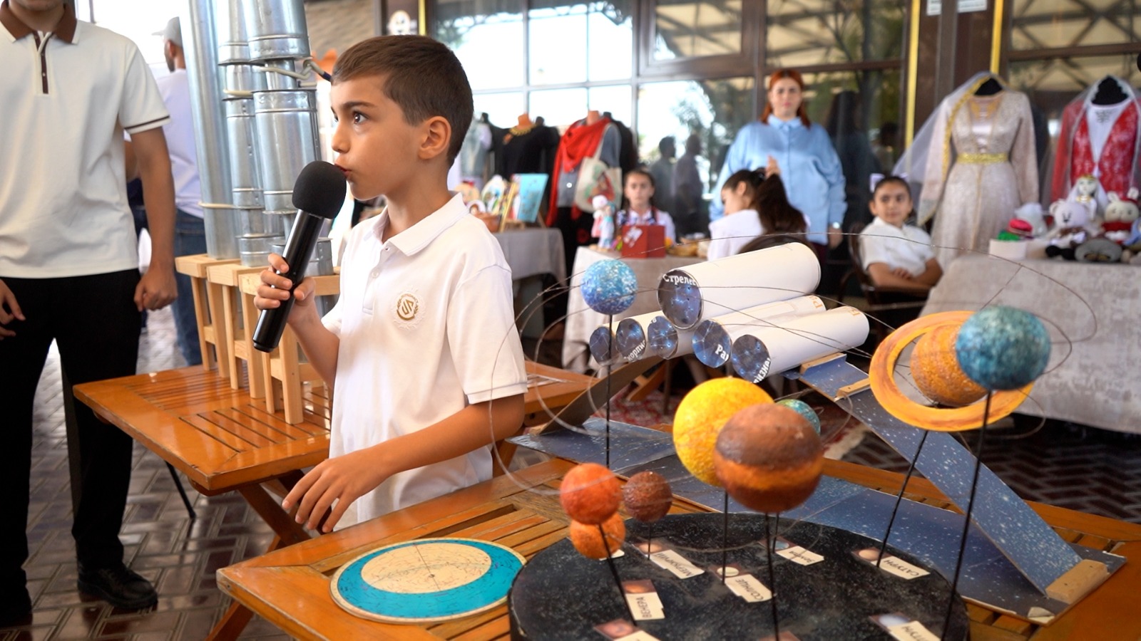 Градоначальник вместе с почётными гостями и директорами образовательных учреждений посетил каждую площадку, на которых были представлены магистральные направления модели школы будущего: «Воспитание», «Знание», «Творчество», «Профориентация». Учащиеся рассказали о своём участии в городских, региональных и всероссийских конкурсах, презентовали лучшие проектные работы, продемонстрировали свои достижения, в том числе изобретения в робототехнике, показали мастер-классы по изготовлению глиняных кувшинов, вышиванию, рисованию, изготовлению игрушек и подарили желающим поделки, изготовленные собственные руками.