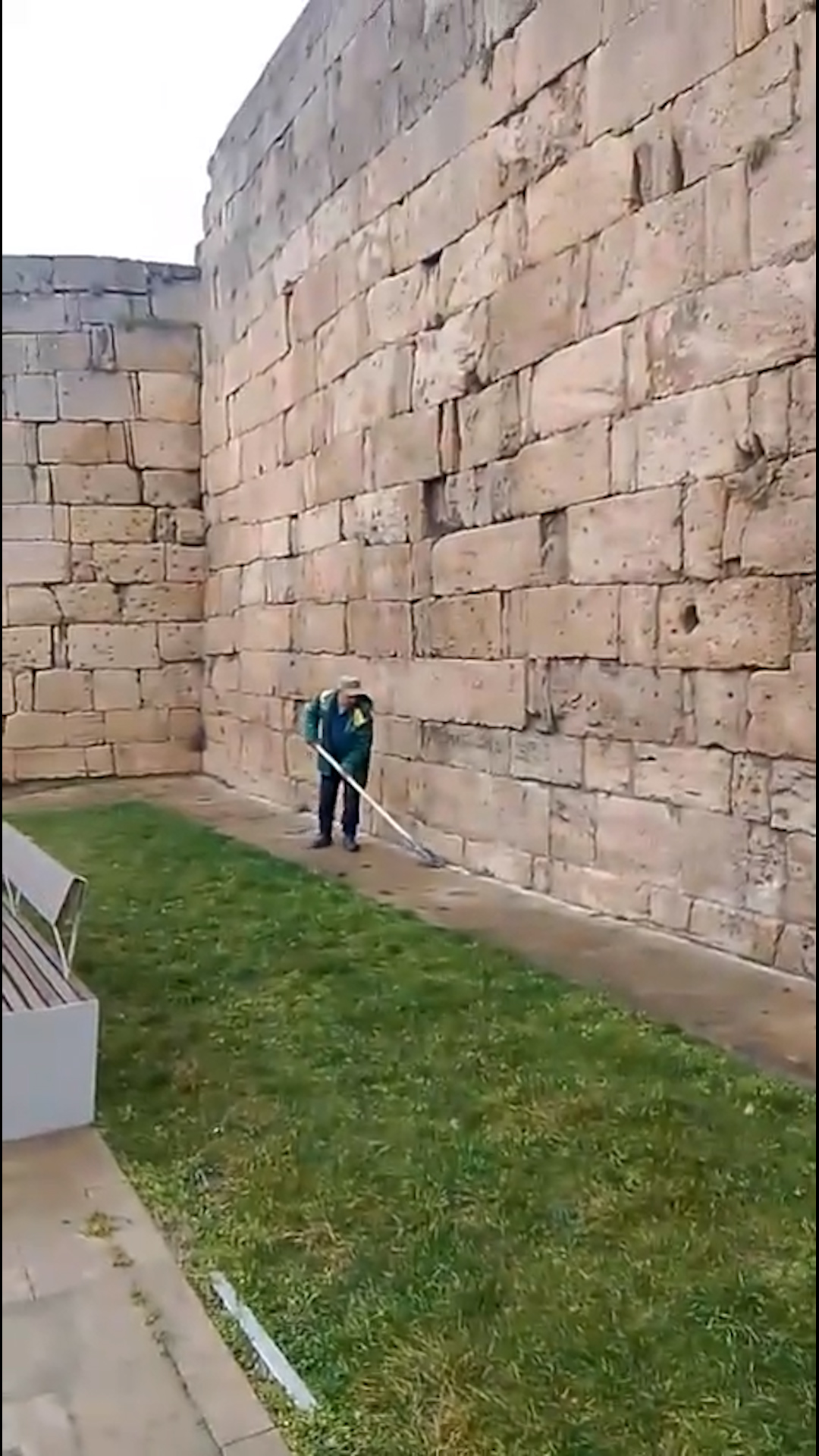 На улице Мамедбекова, вдоль крепостной стены, ведутся работы по санитарной очистке территории и обрезке деревьев.