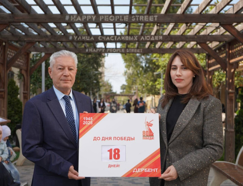 Директор Лезгинского Государственного музыкально-драматического театра им. С. Стальского Динара Эминова и директор Азербайджанского государственного драматического театра Фирдоуси Аскеров приняли участие в акции «100 дней до Победы».