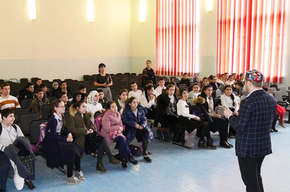 17 марта 2018 года , Хуснуддин Ашуралиев сотрудник отдела Просвещения Муфтията РД провёл встречу с учащимися школы № 20 г.Дербент .