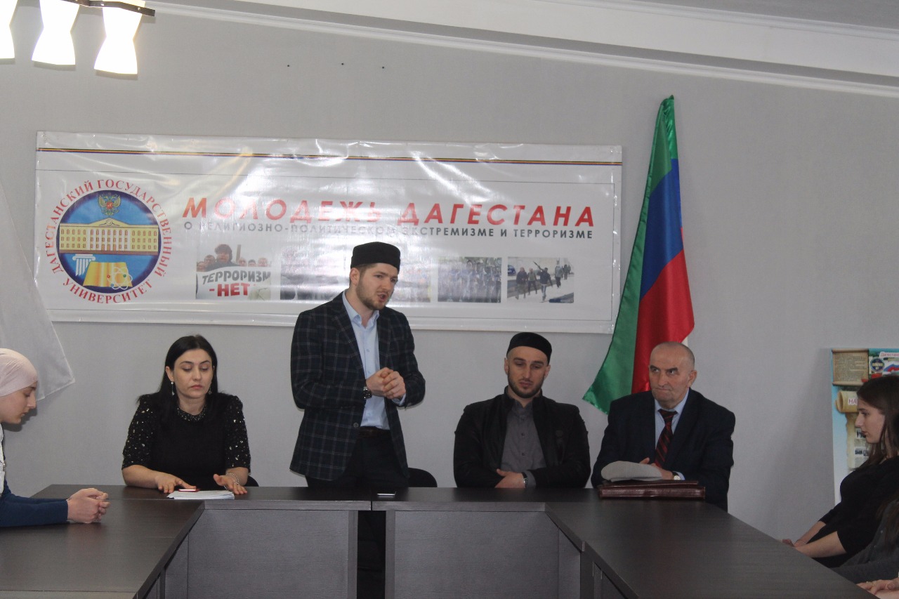 В рамках проведения общегородского месячника по противодействию терроризму и экстремизму «Три конфессии Дербента вместе против терроризма и экстремизма » в ФГБОУ ВО филиала ДГУ в г. Дербенте был проведен круглый стол на тему: «Роль СМИ в развитии молодежной культуры. Вербовка молодежи через социальные сети - как форма информационного экстремизма».