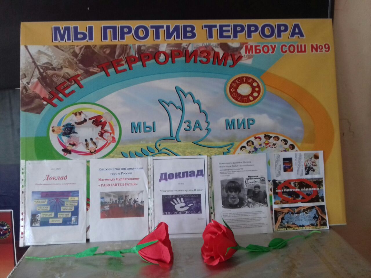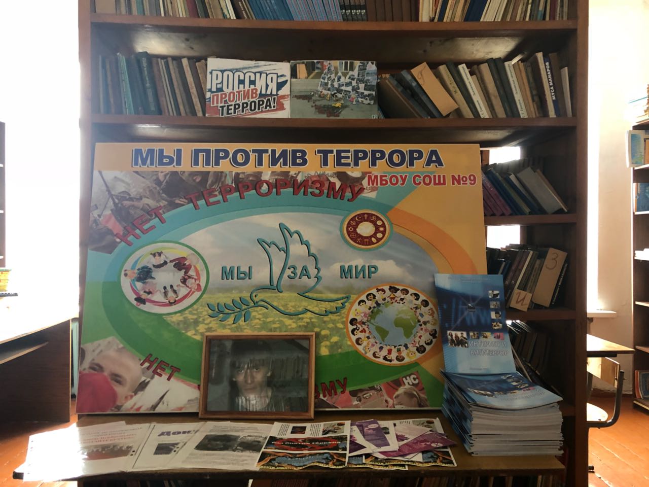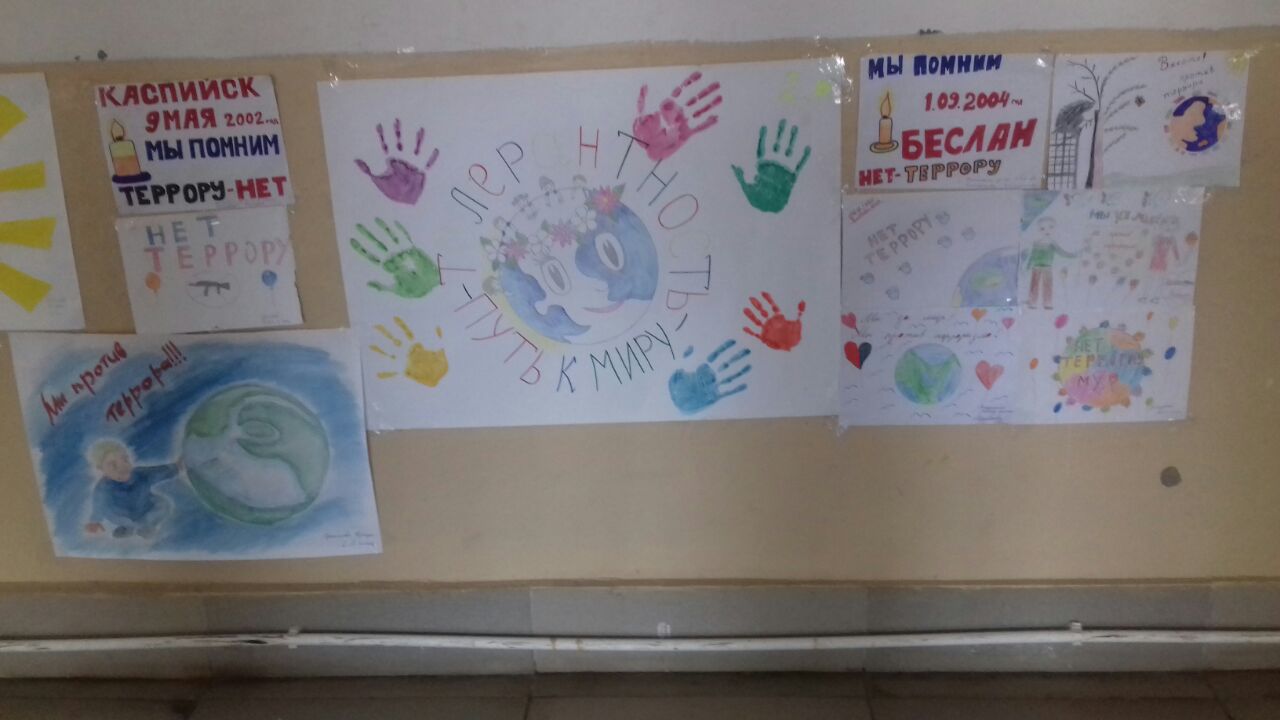 Одним из ключевых направлений борьбы с террористическими и экстремистскими проявлениями в общественной среде выступает их профилактика. В рамках проведения месячника «Три конфессии Дербента против терроризма и экстремизма» в МБОУ СОШ №9 был проведён конкурс рисунков ,дети приняли активное участие .