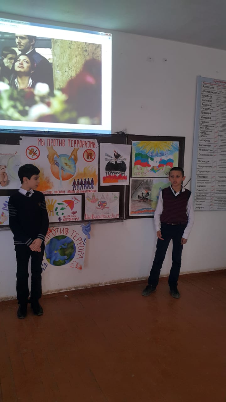 В ходе мероприятия учащиеся узнали об истории возникновения терроризма и о наиболее известных терактах последнего десятилетия, в том числе и о трагедии, которая произошла в метро на «Павелецкой» 2004 года в городе Москва.