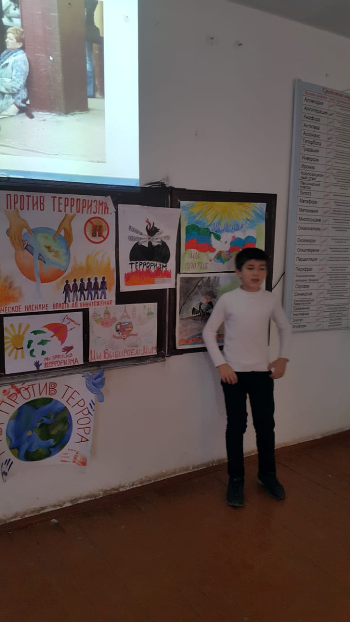 Также прошла дидактическая игра «Антитеррор». Учащиеся нарисовали рисунки, в которых отразили свое отношение к терроризму.