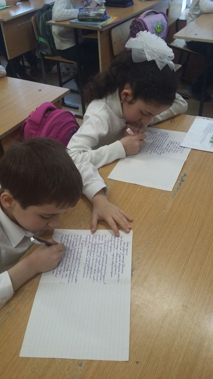 В МБОУ «Прогимназия №15» в рамках месячника «Три конфессии Дербента вместе против терроризма и экстремизма» был проведен конкурс сочинений среди учащихся 2-4 классов на тему: «Дагестан против войны!» и «Мы против террора!».