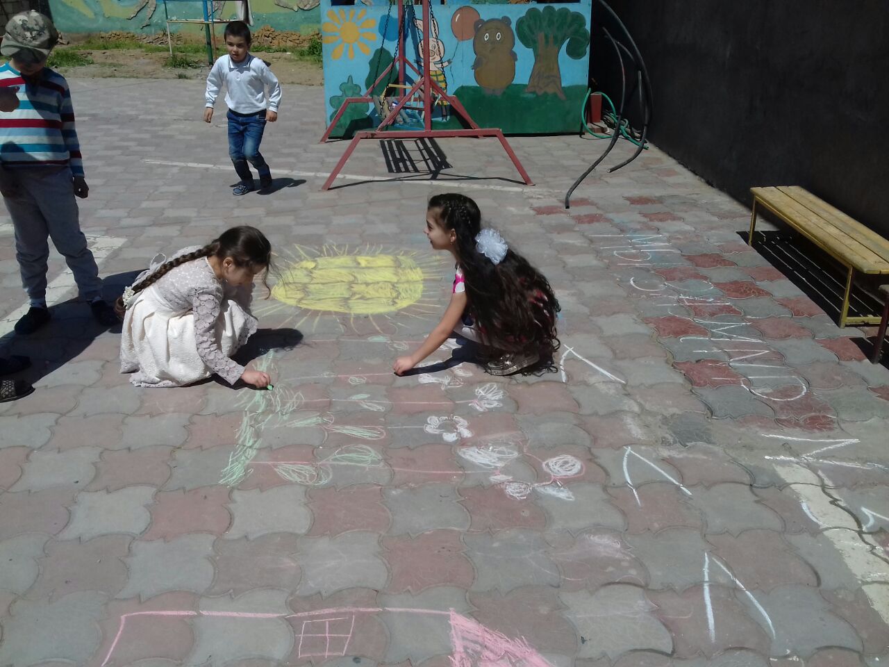 18 апреля 2018 года в рамках месячника «Три конфессии Дербента вместе против терроризма и экстремизма» воспитатели старших групп МБДОУ Детский сад №11 Пашаева А.Т. и Керимова И.Ф. провели конкурс рисунков на асфальте на тему : «Мы за мир и за дружбу».