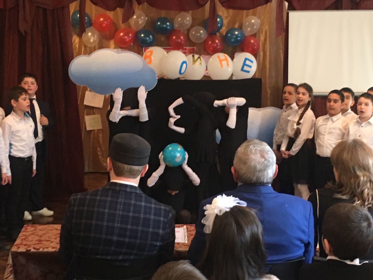 На мероприятие были приглашены гости : начальник управления по делам ГО и ЧС г.Дербент - Сайбунов Сайбун Зайпуллаевич, сотрудник отдела просвещения Муфтият РД - Хуснудин Ашуралиев, а также члены родительского комитета Прогимназии .