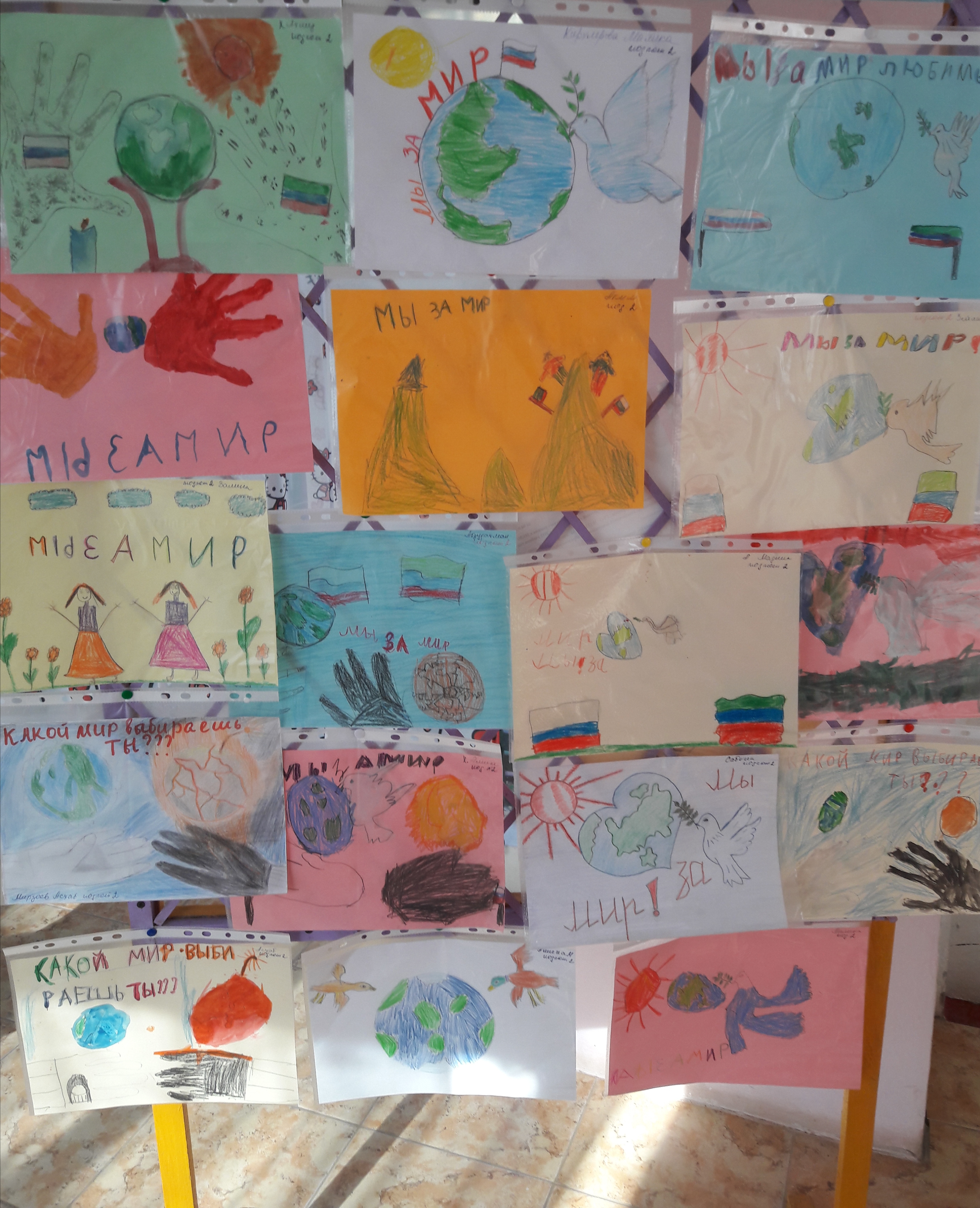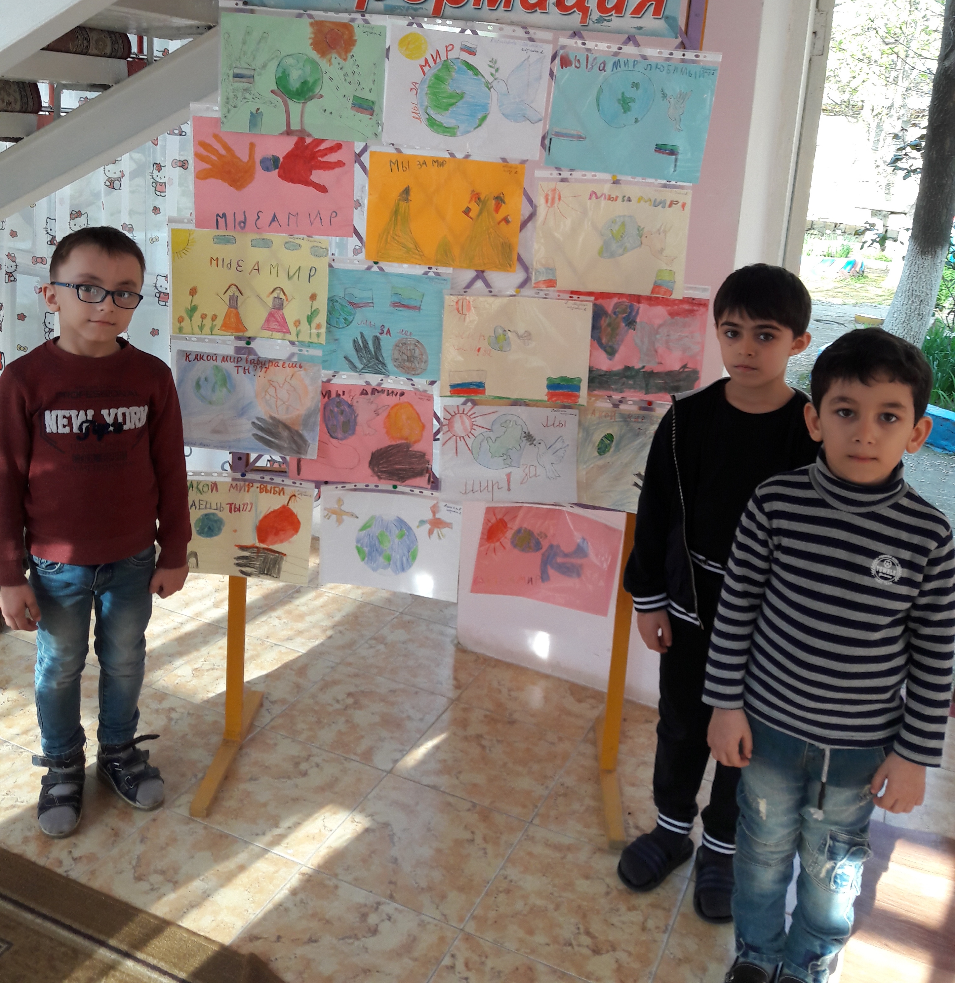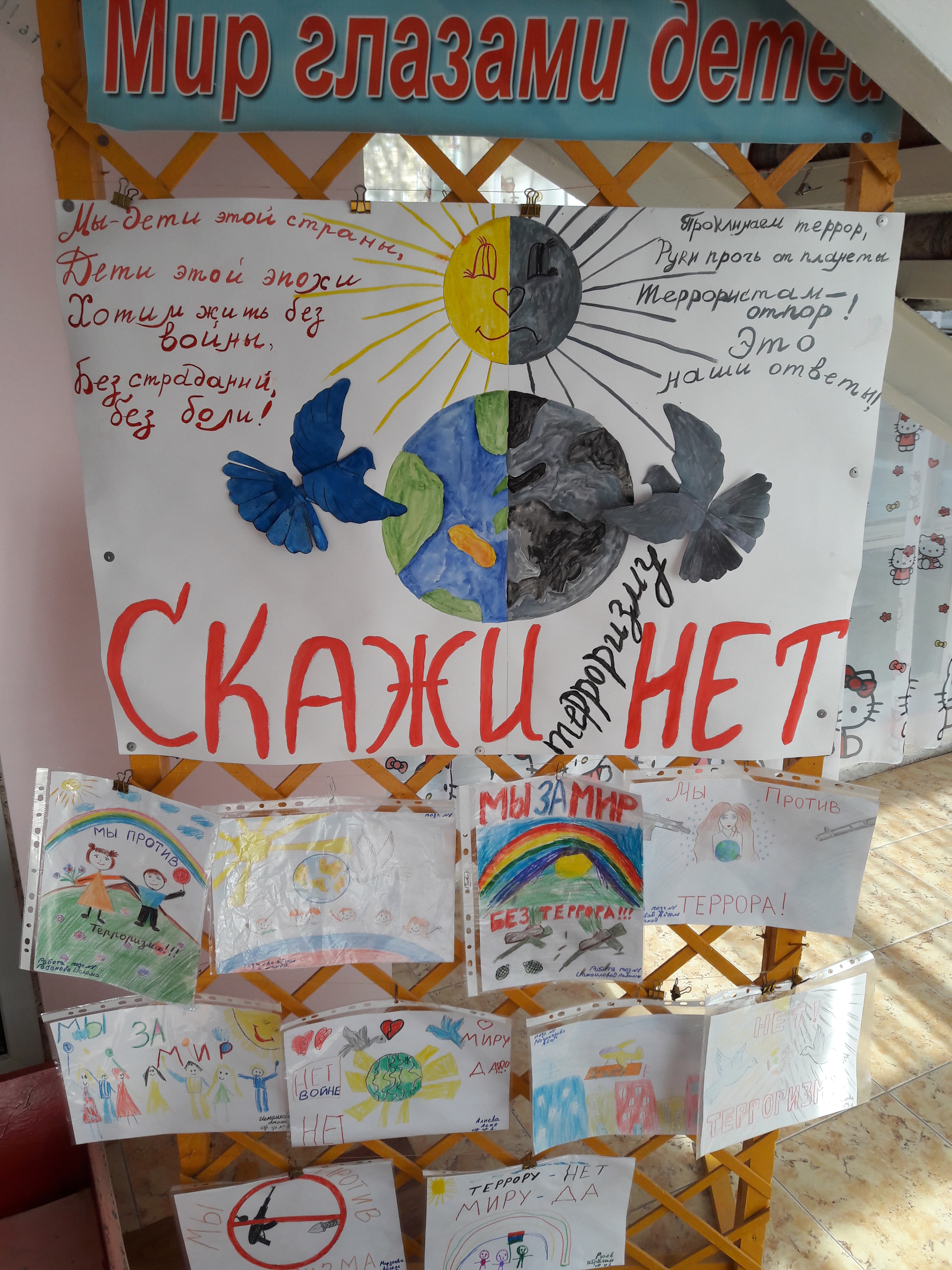 Выставка рисунков на тему: "Мы против террора".