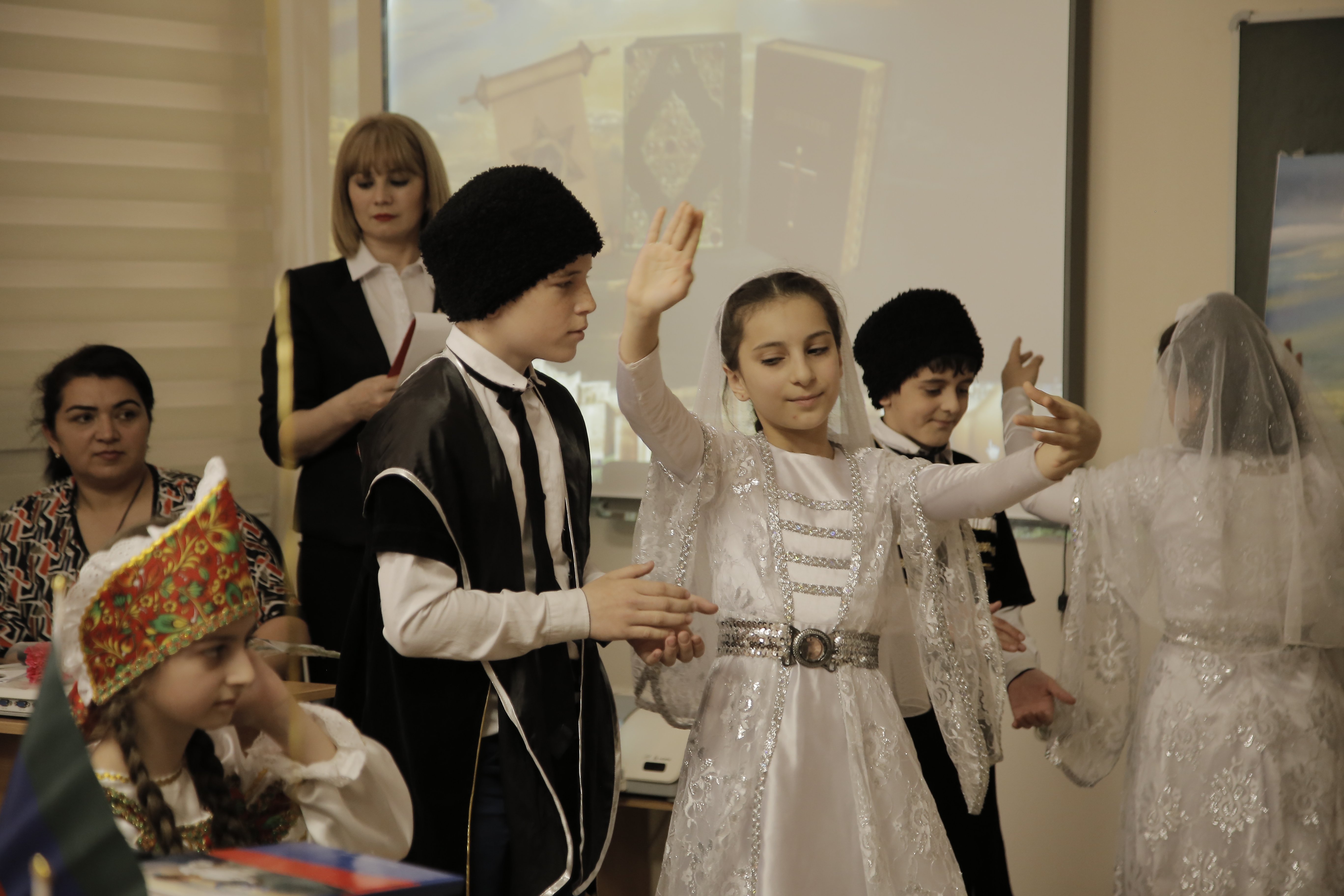 Учащиеся четвертых классов подготовили сценки, отражающие жизнь города, его атмосферу, танцевали традиционные танцы разных народов, читали стихи, пели песни о дружбе и единстве наций.