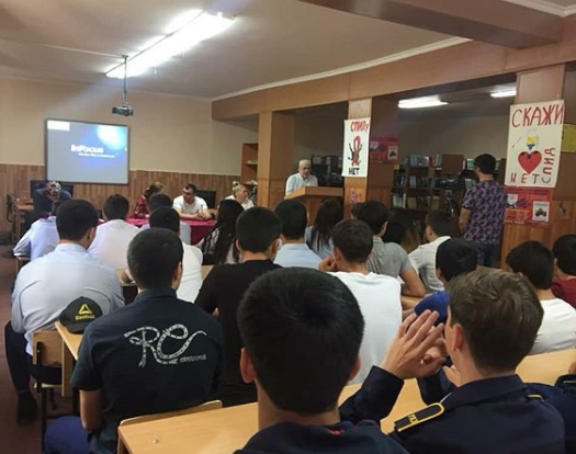 После конференции желающие прошли в медицинский кабинет колледжа для прохождения теста, где одним из первых показательно прошел и сам руководитель молодежного центра "Респект" Шихрагимов Закир.