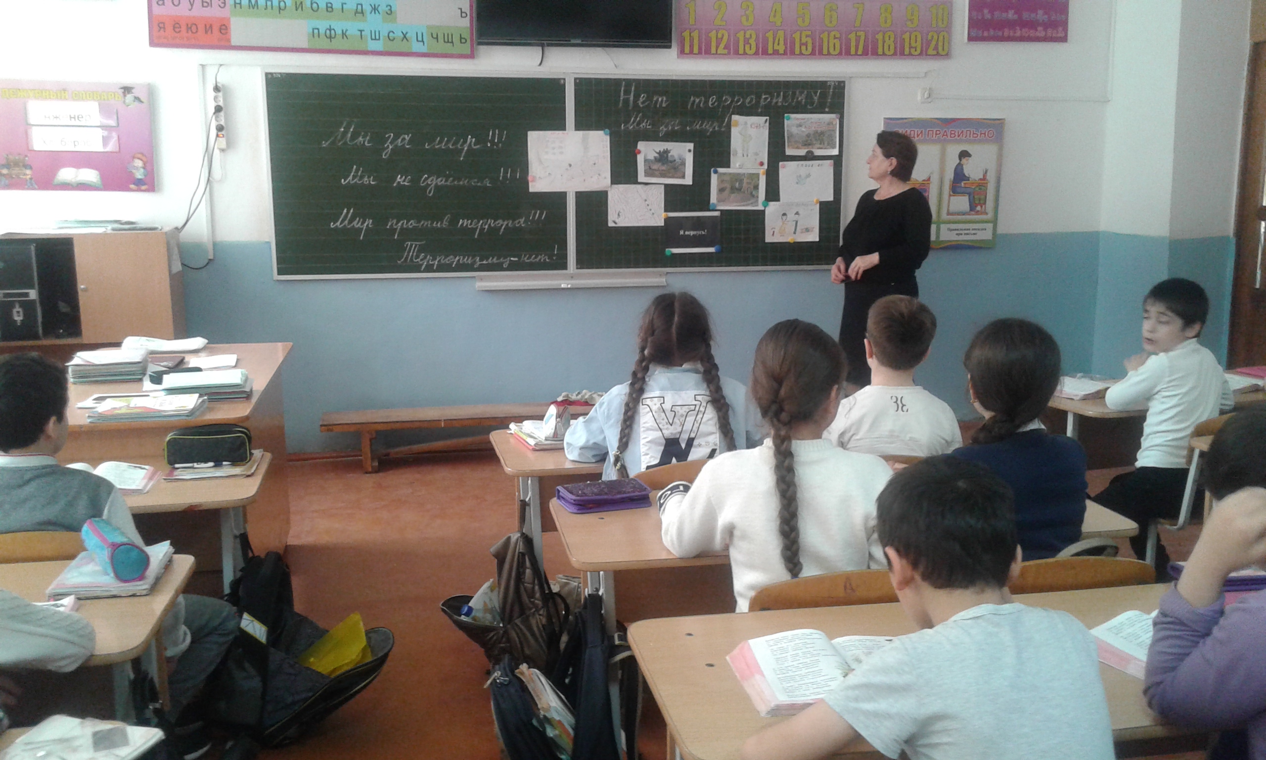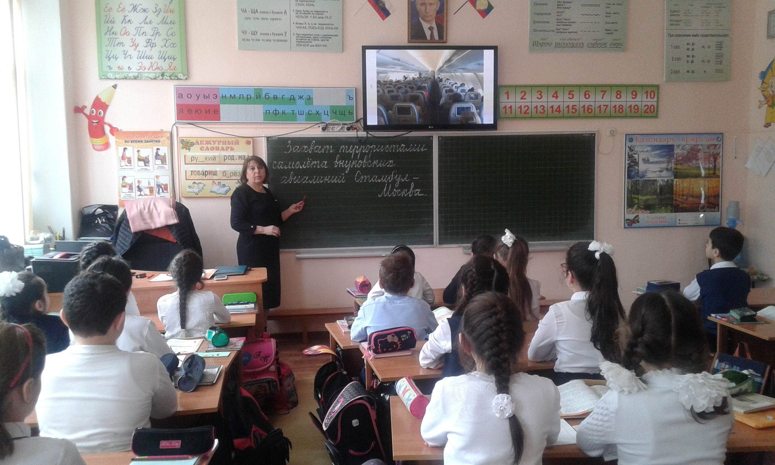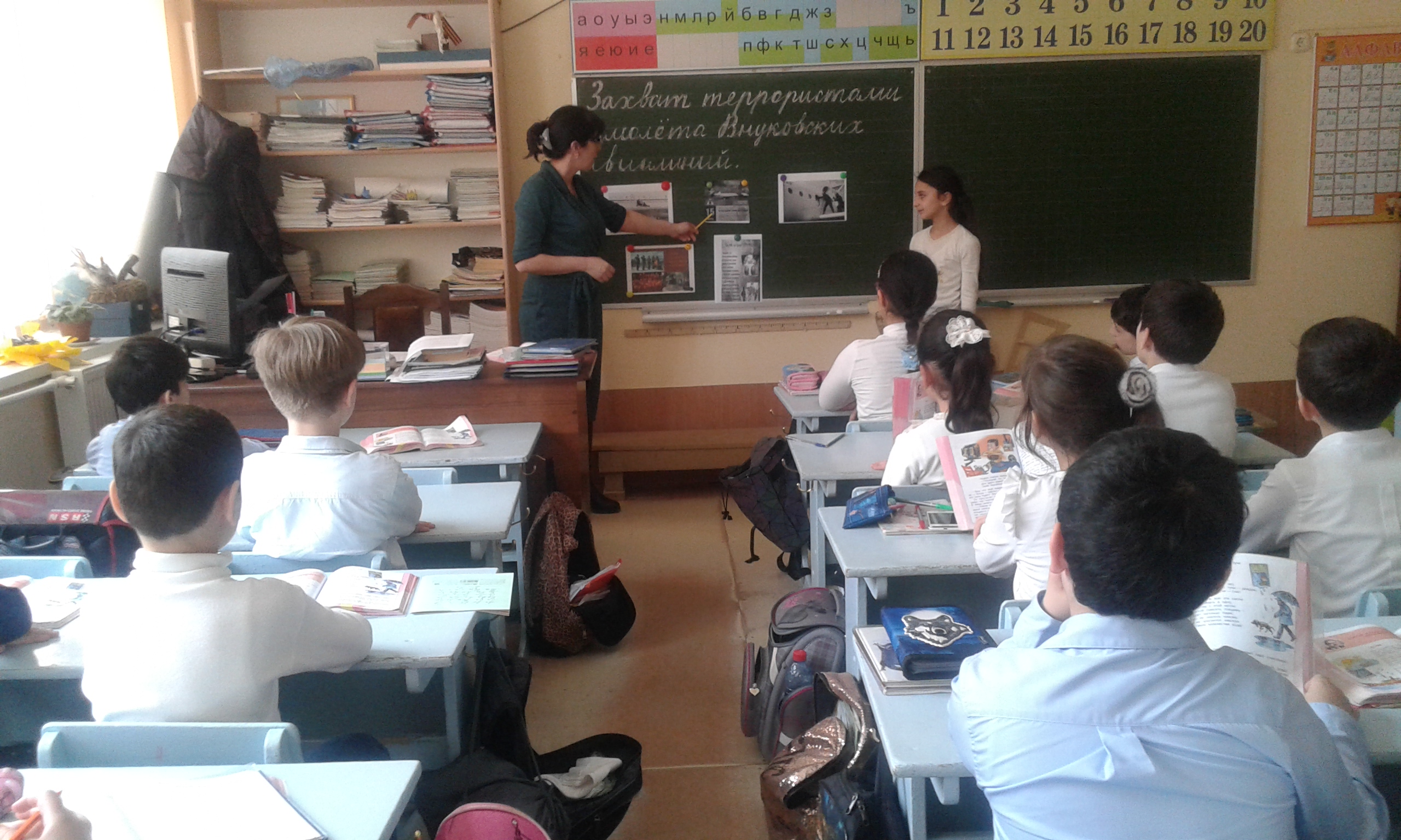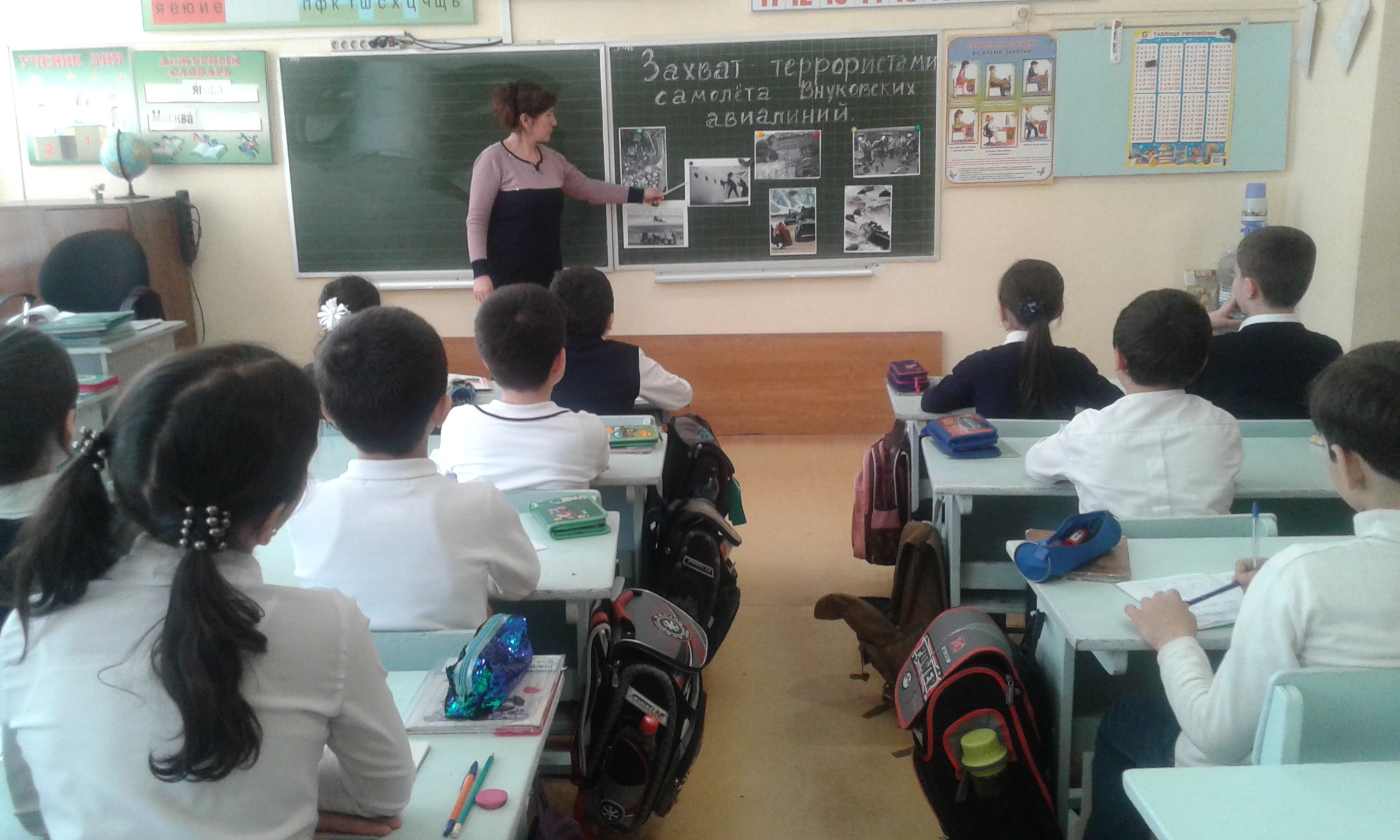 В школе также прошли пятиминутки, посвященные захвату террористами самолета Внуковских авиалиний «Москва-Стамбул». Классные руководители рассказали учащимся о события того дня.