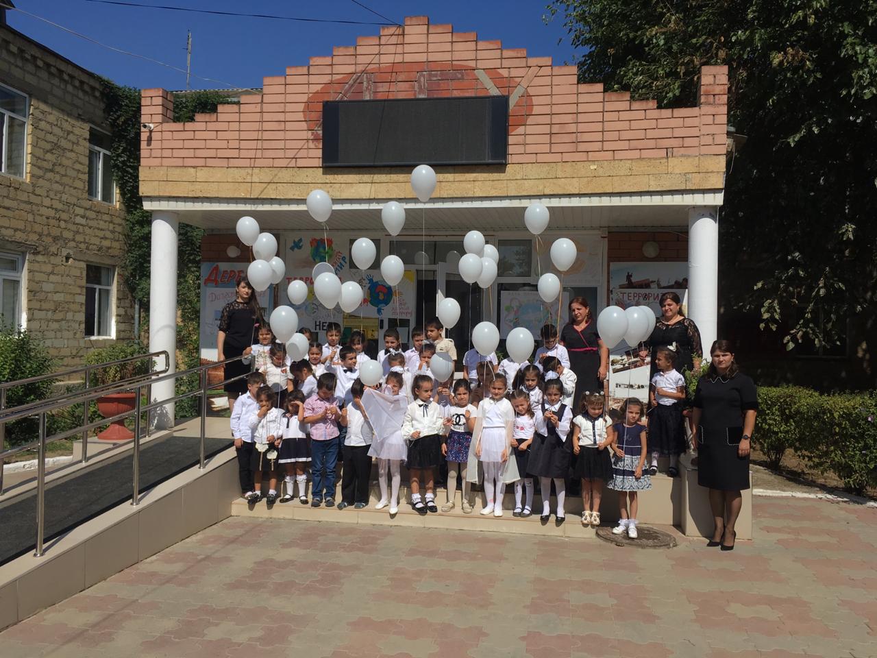 В конце мероприятия дети и педагоги почтили память погибших минутой молчания и выпустили в небо белые шары.