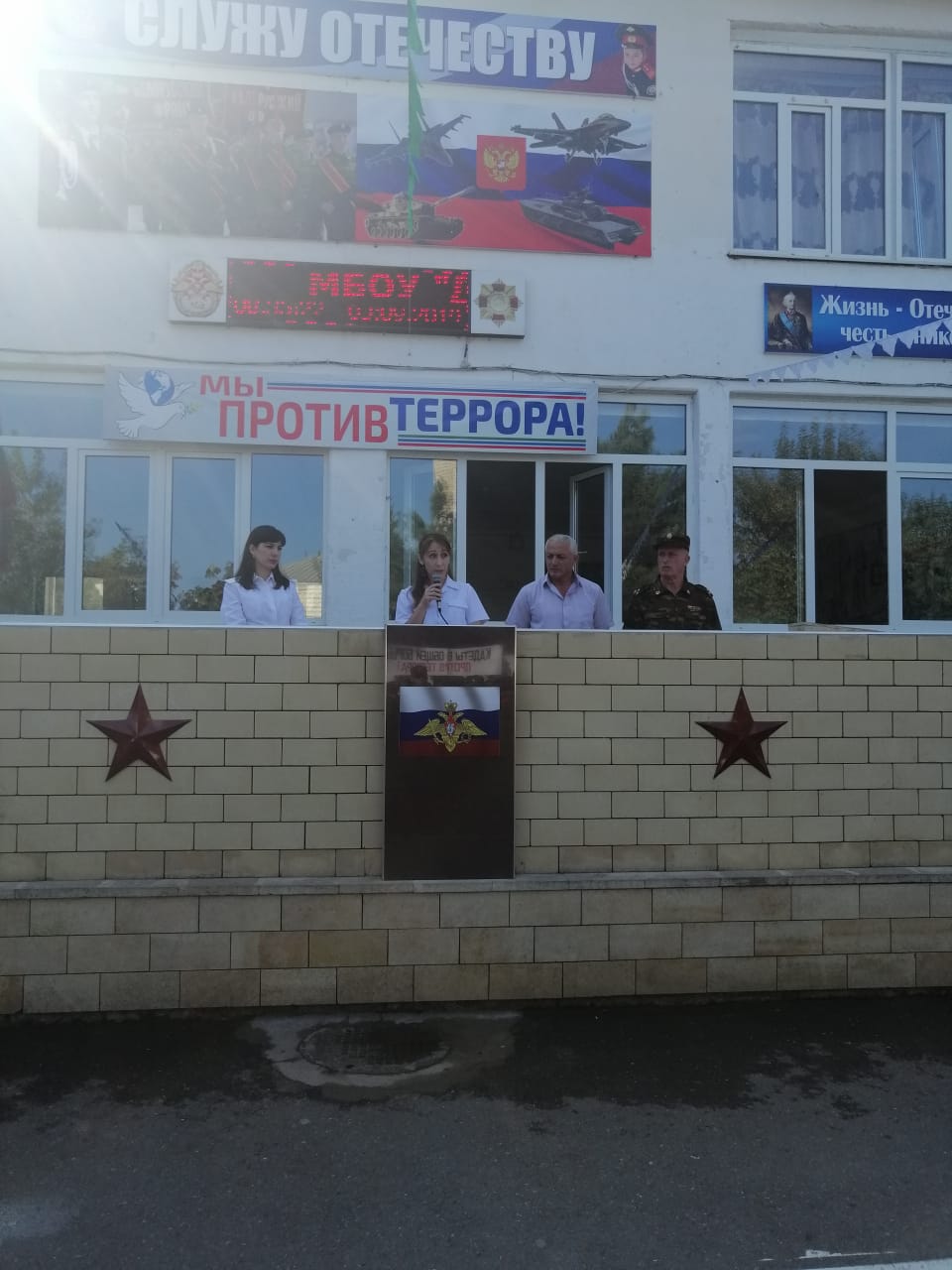 В своём выступлении они отметили, что сегодня защита — Родины - это такой же священный долг и обязанность каждого из нас и в наших силах сохранить мир на Земле без войны и терактов, только в дружбе, сплоченности и гармонии всех народов мы можем противостоять терроризму, и не допустить разрастания этого преступного безумия, призвали кадетскую общественность к бдительности и внимательности.