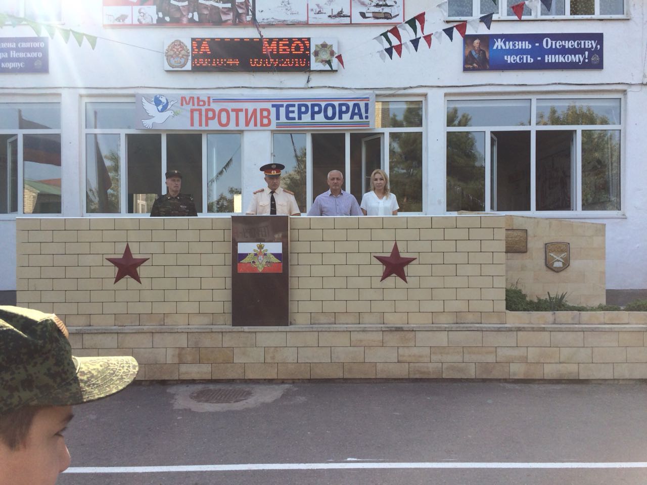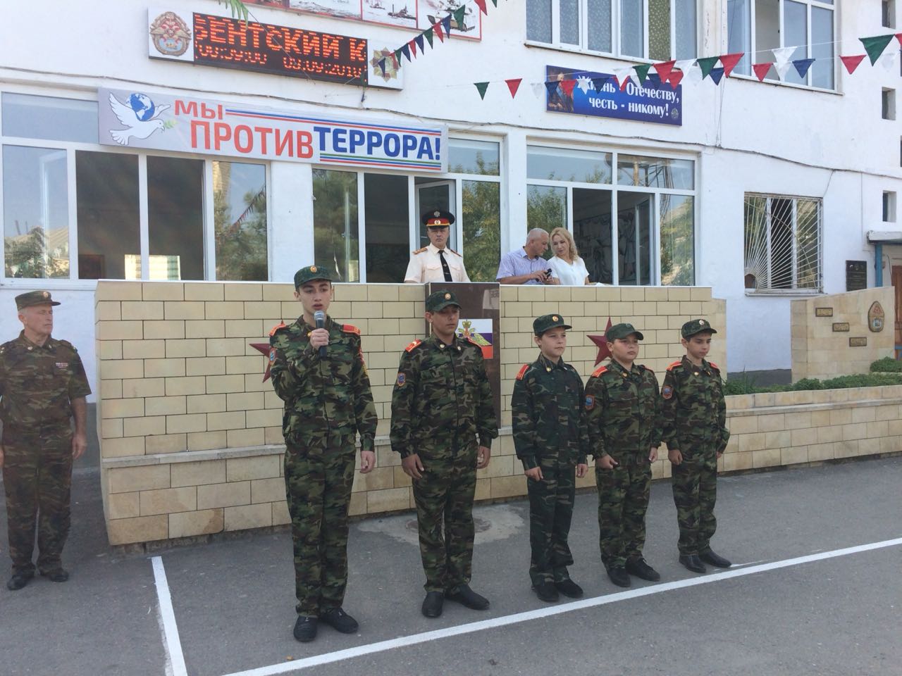 Россия. Дагестан. Родина. Для каждого из нас эти слова синонимы Мира, Добра, Уважения и светлого неба над головой. Но к сожалению, есть слова противоположные миру и добру, мечтам и светлому будущему- Война, Терроризм, отметила в своем выступлении учитель истории и обществознания Габибуллаева Н.Г. и кадеты: Бытдаев И., Нефтуллаев А., Бегеев А., Мурадов А., Магомедов Т. в своих стихах.