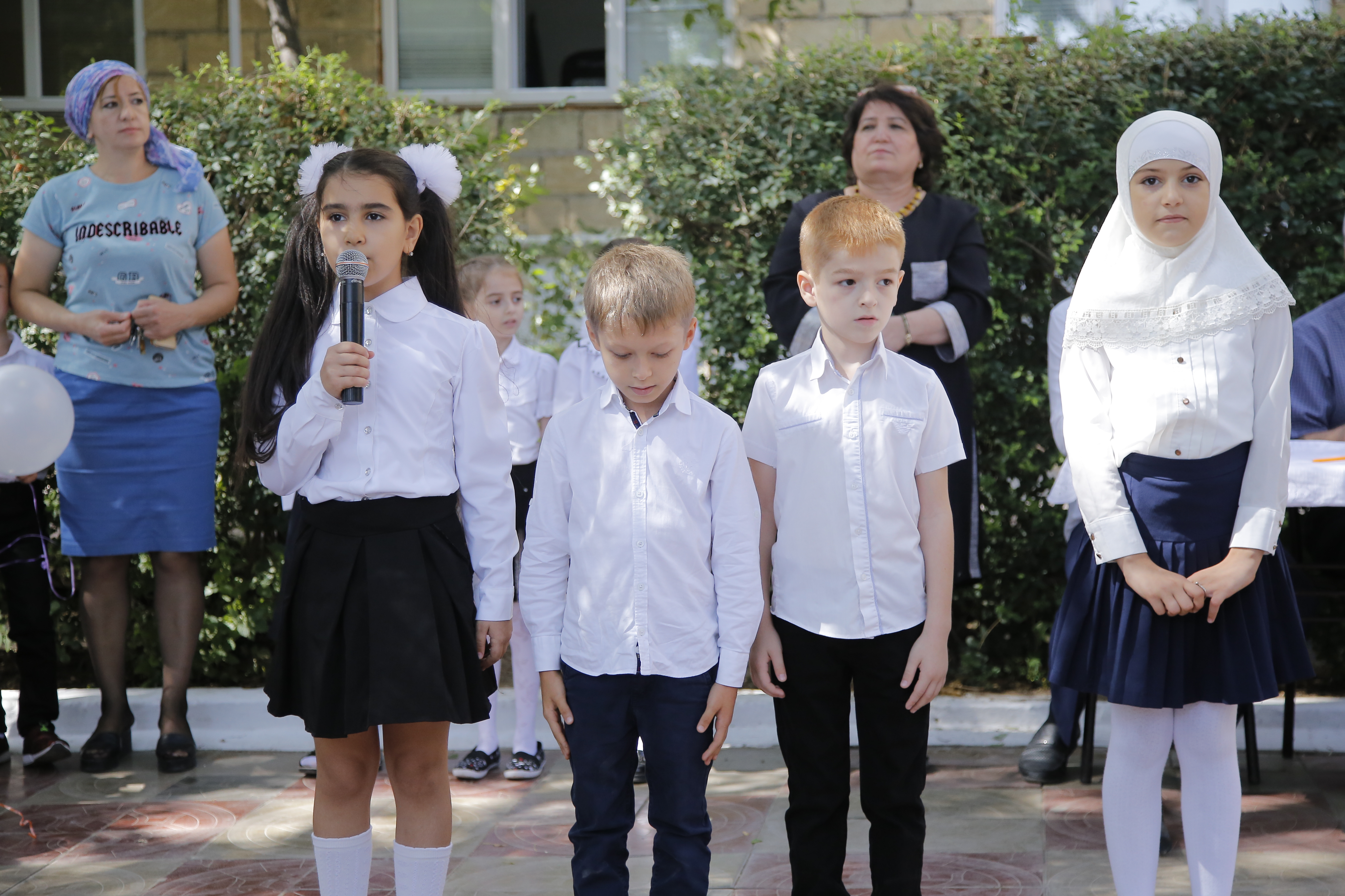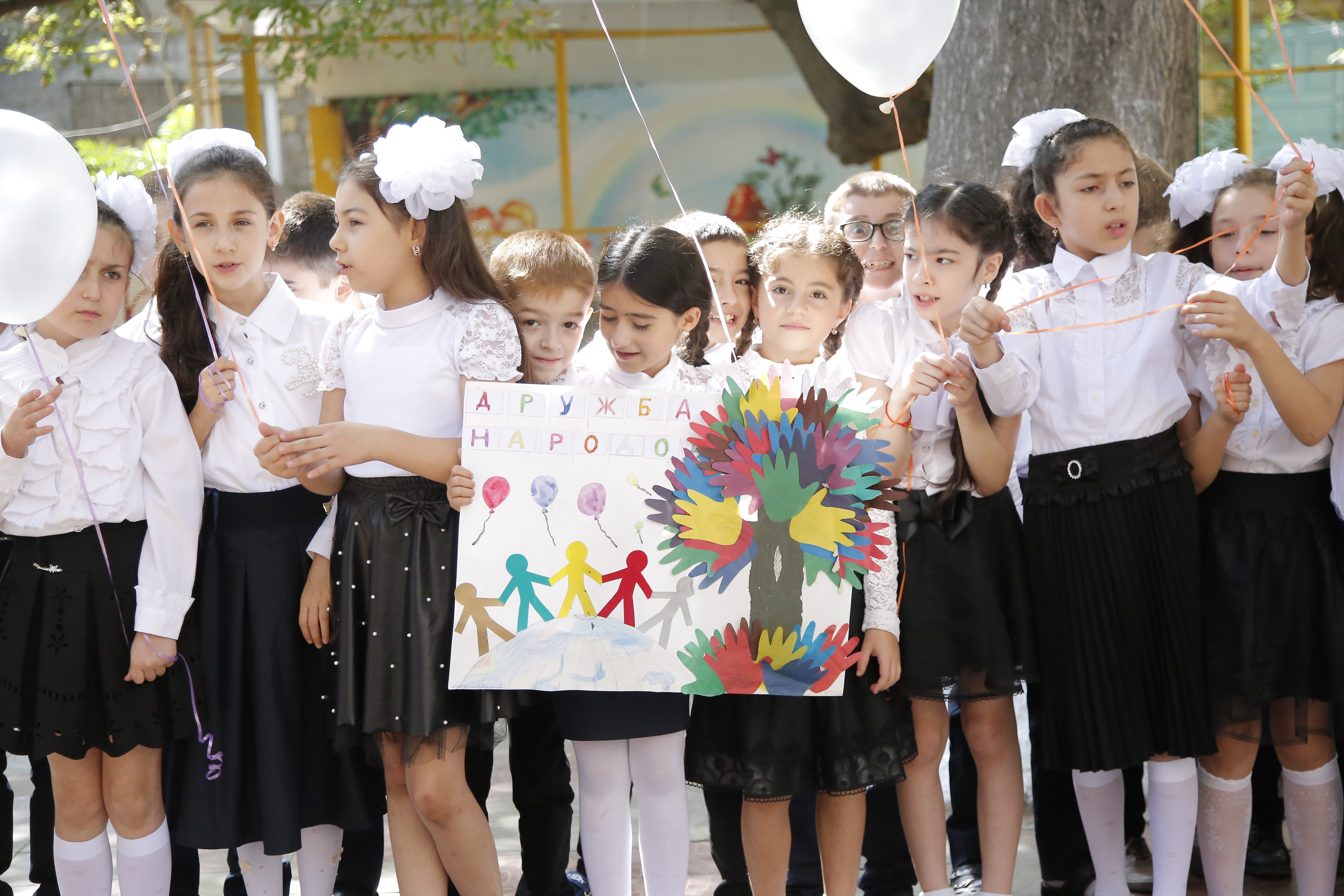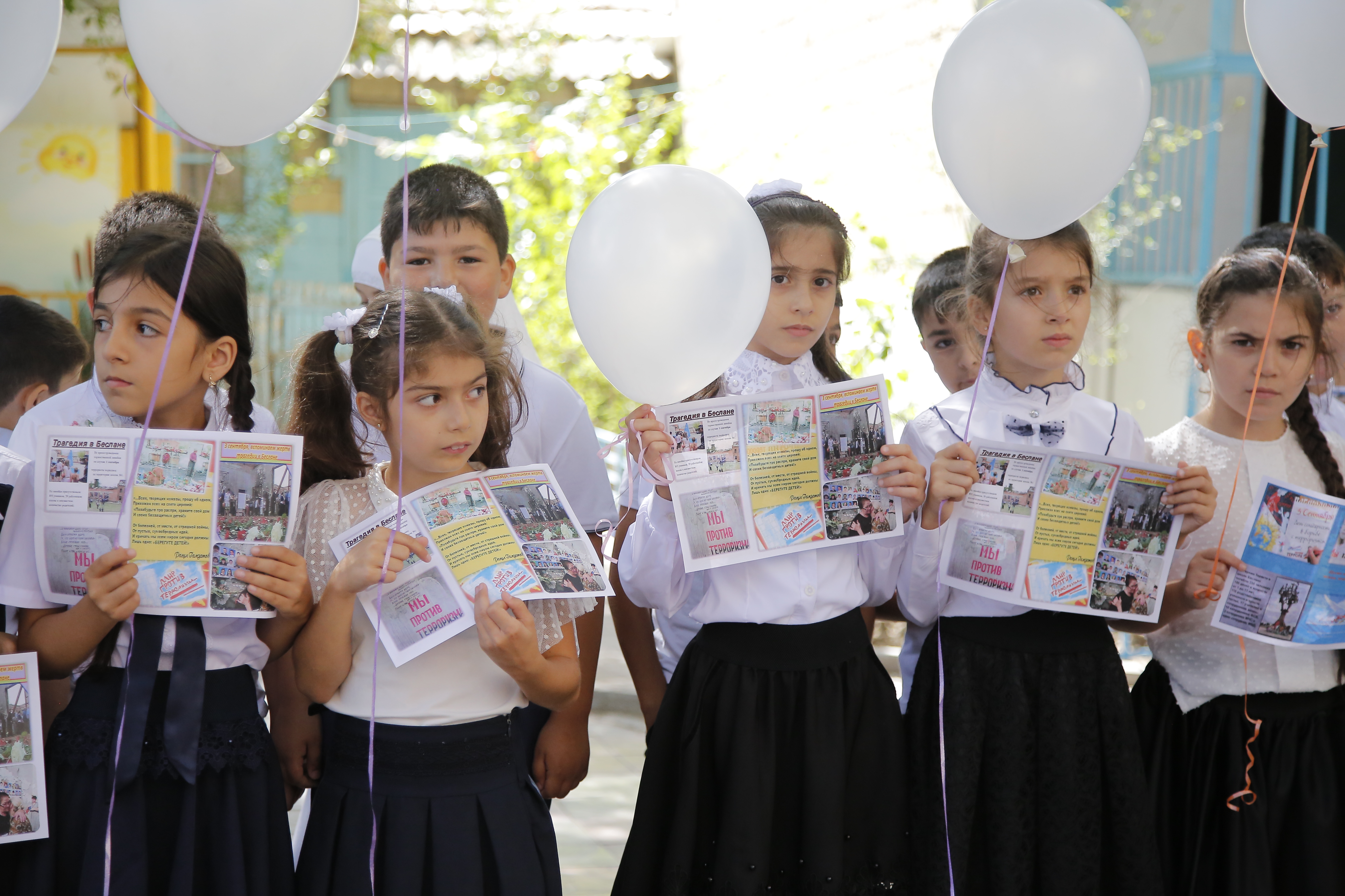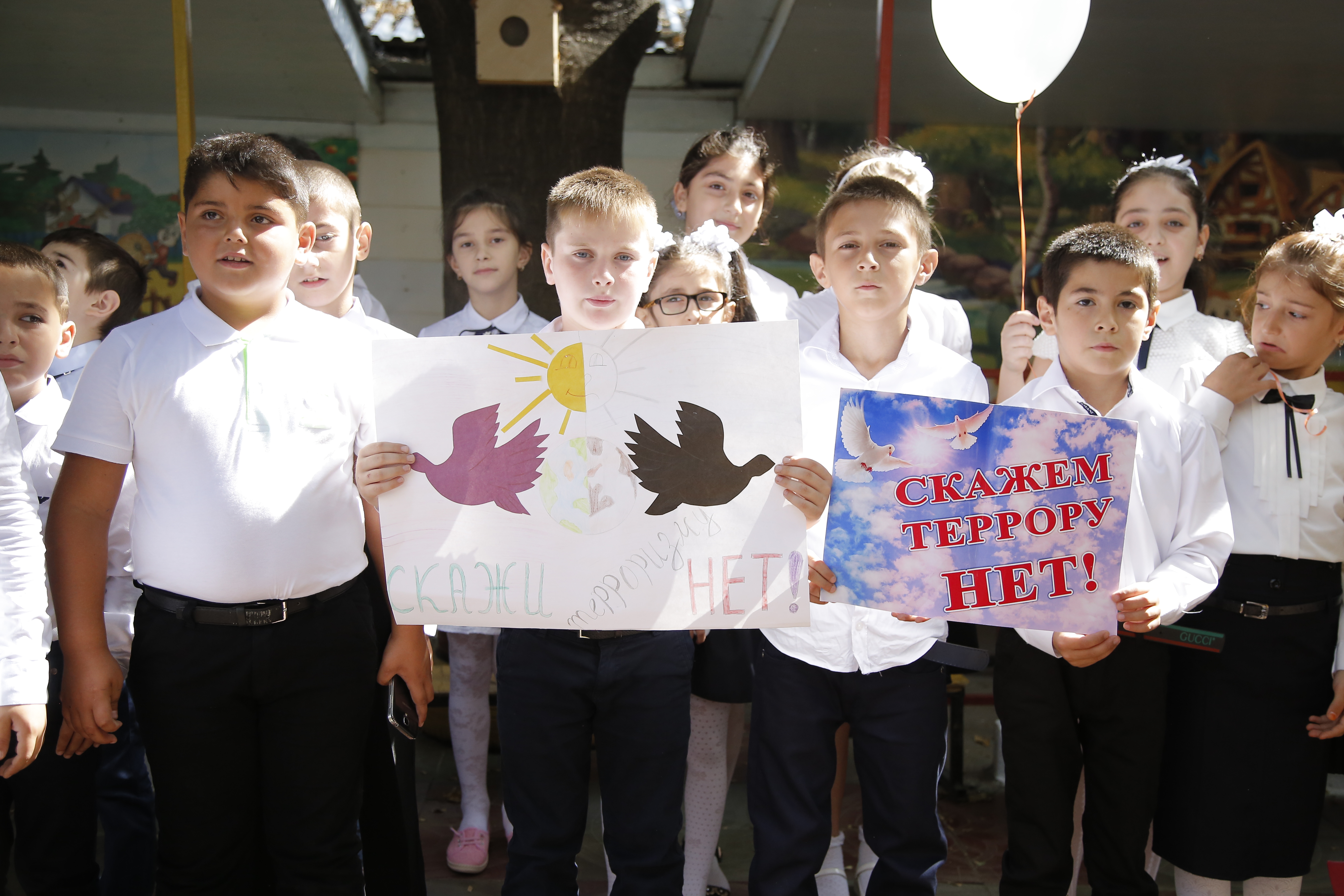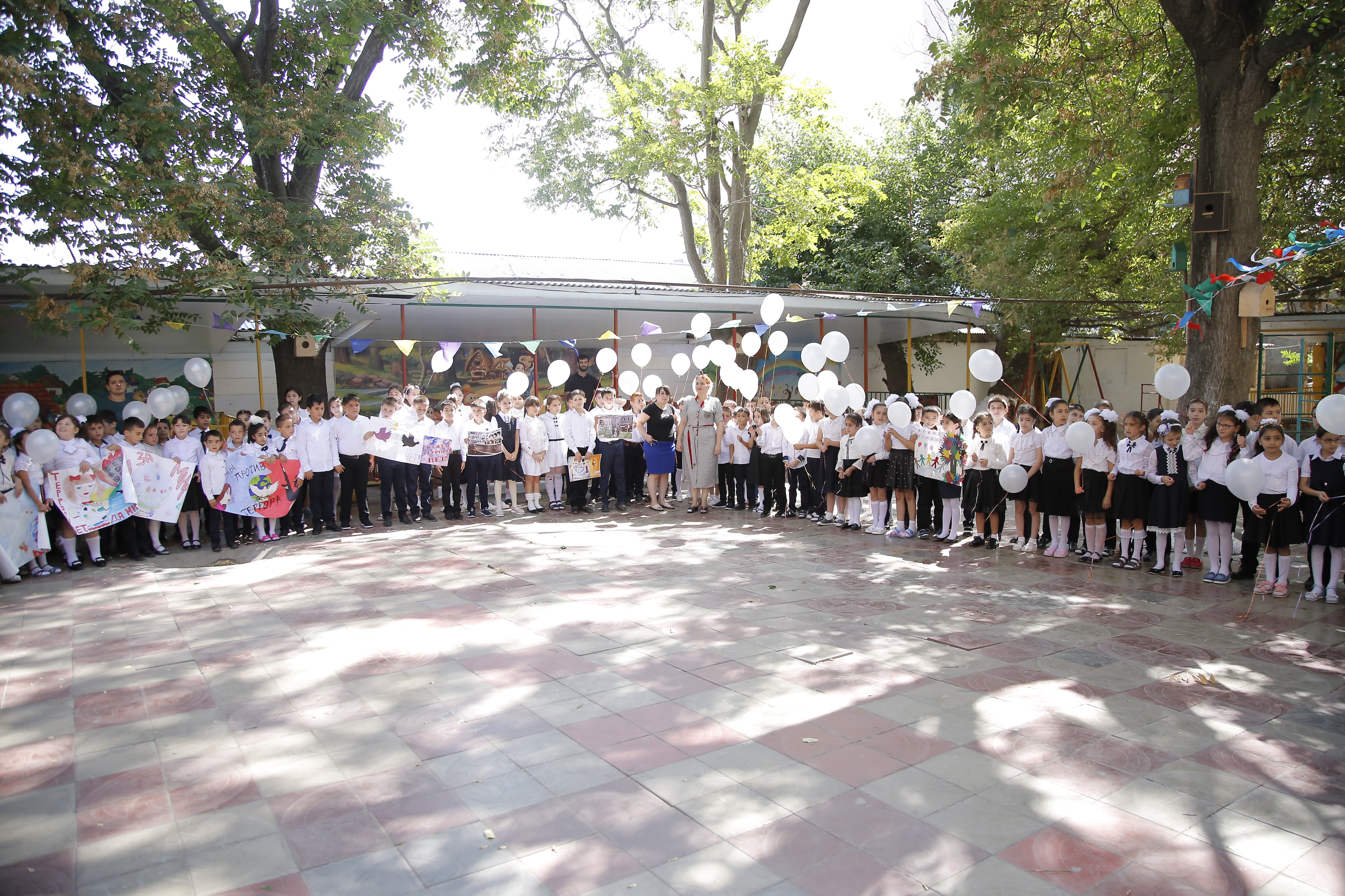 Дети от каждого класса и групп прочитали стихи, станцевали и спели в поддержку акции. В конце мероприятия прозвучала минута молчания, по завершению которой в небо были выпущены шары и голуби.