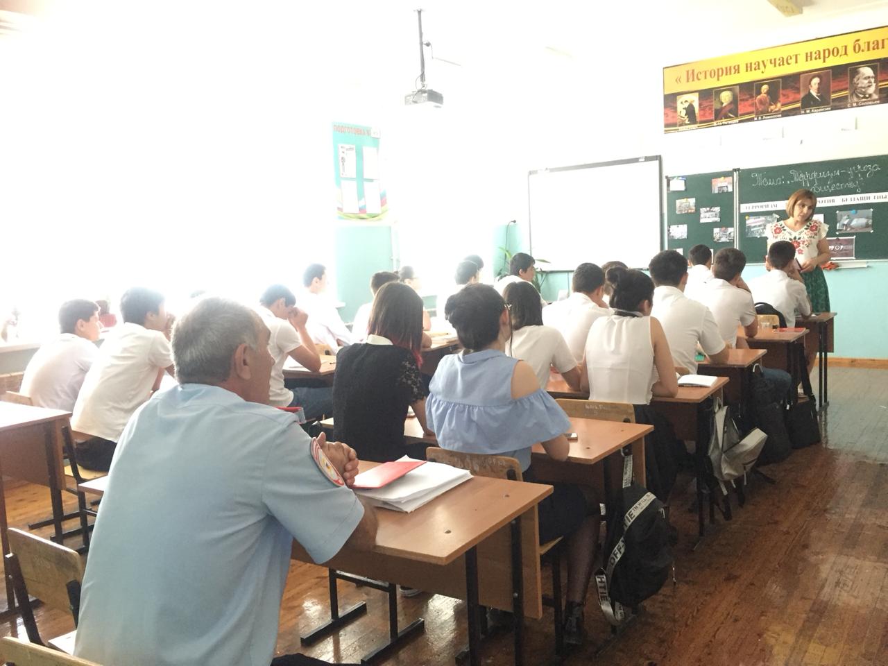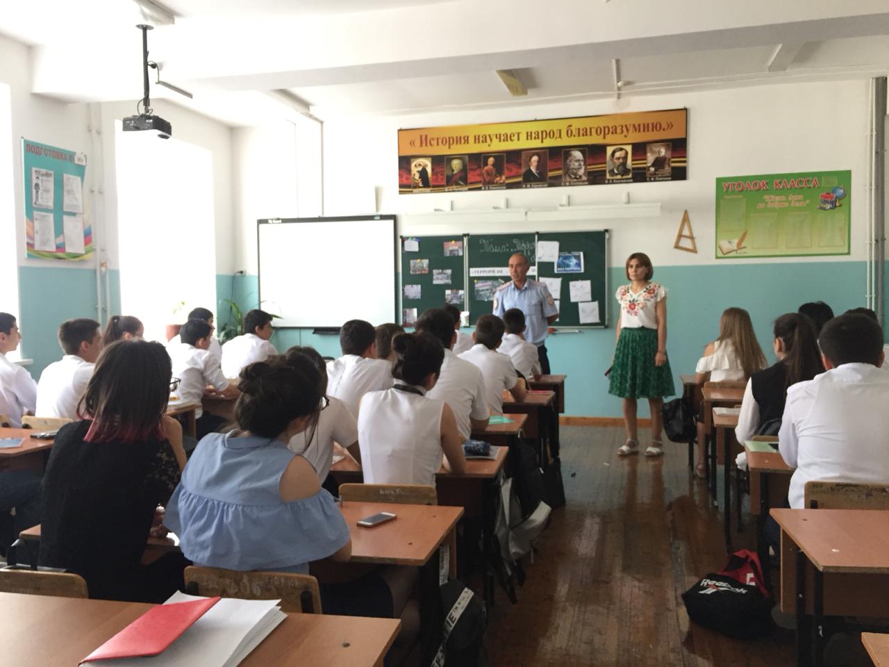 На урок был приглашен инспектор ПДН ОМВД России по г.Дербент майор полиции Шихалиев Т.А.