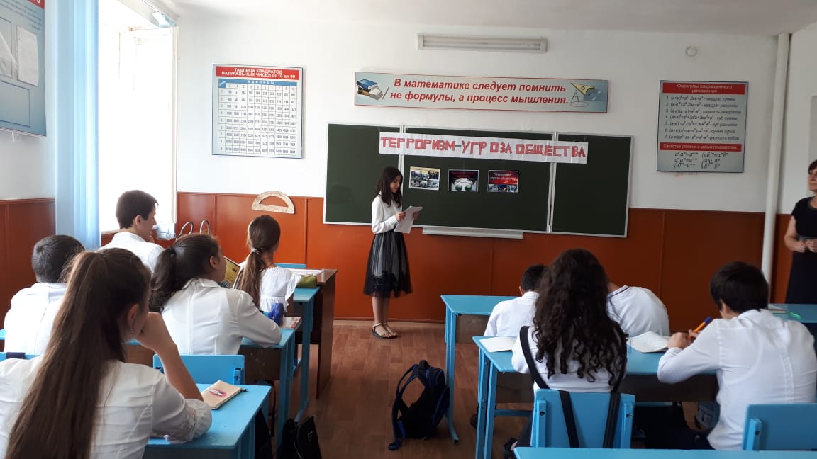 В ходе беседы классные руководители формировали толерантные отношения, профилактику межнациональной розни и терпимости. Ребята рассуждали о типах современного терроризма и борьбе с ним.
