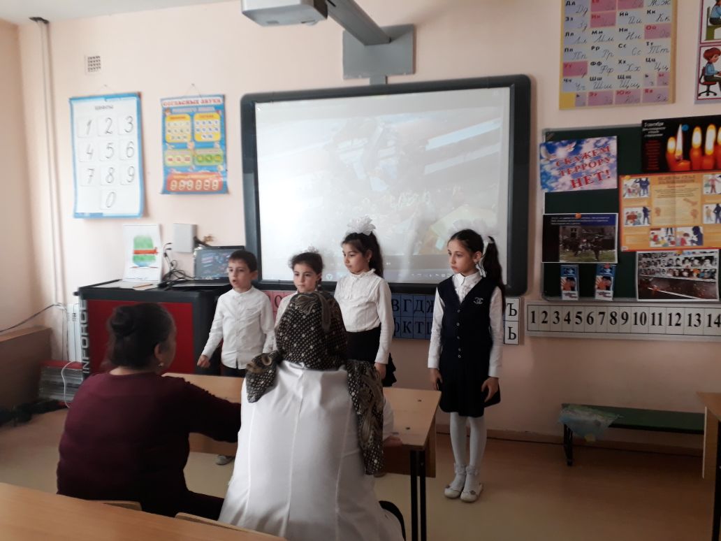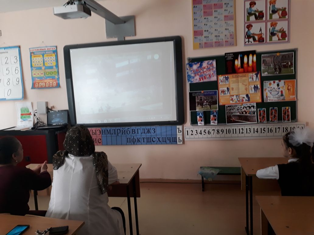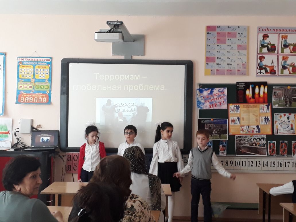 Участникам мероприятия были предоставлены доклад ( учитель Пашаева С.Я.) и кадры документальной кинохроники «Мы говорим террору -НЕТ!». Учащиеся прочитали стихи о мире, дружбе, о борьбе с терроризмом.