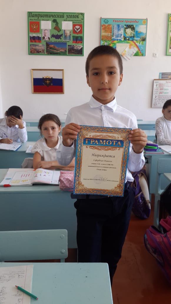 Основной целью, которого, было развить потребность делать добро, воспитывать добродушное отношение к окружающим людям, развивать самовыражение в рисунках. Все рисунки были выполнены с большим старанием. Учащиеся, занявшиеся места, были награждены грамотами.