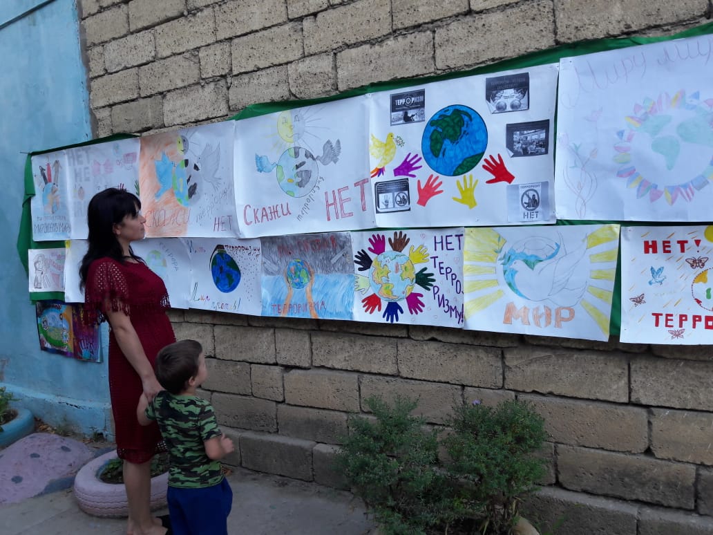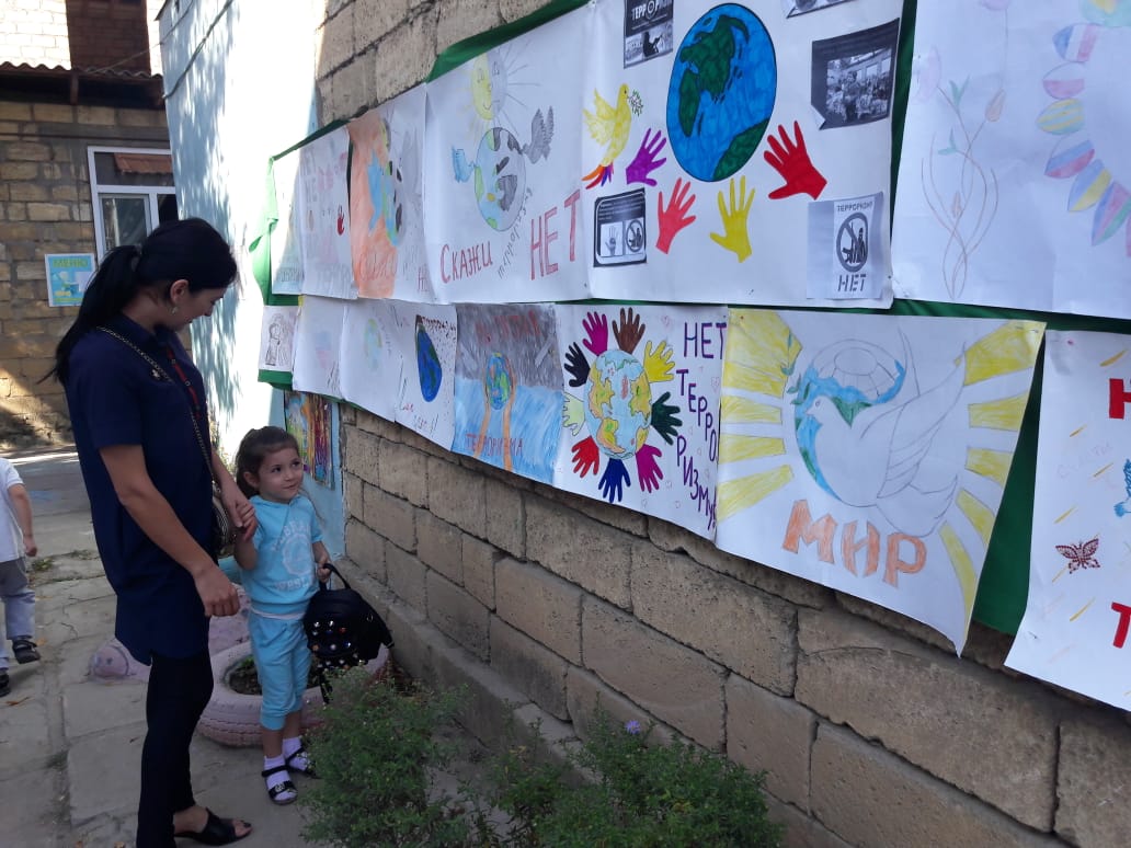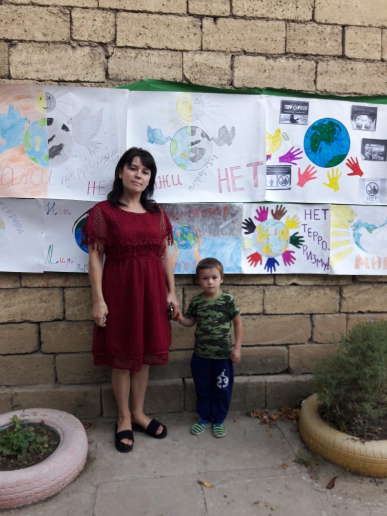 Дети и их родители едины в своем отрицательном отношении к террору и лозунги одинаковы: «Мы за мир!», «Мы против террора!», «Терроризм-угроза планете!