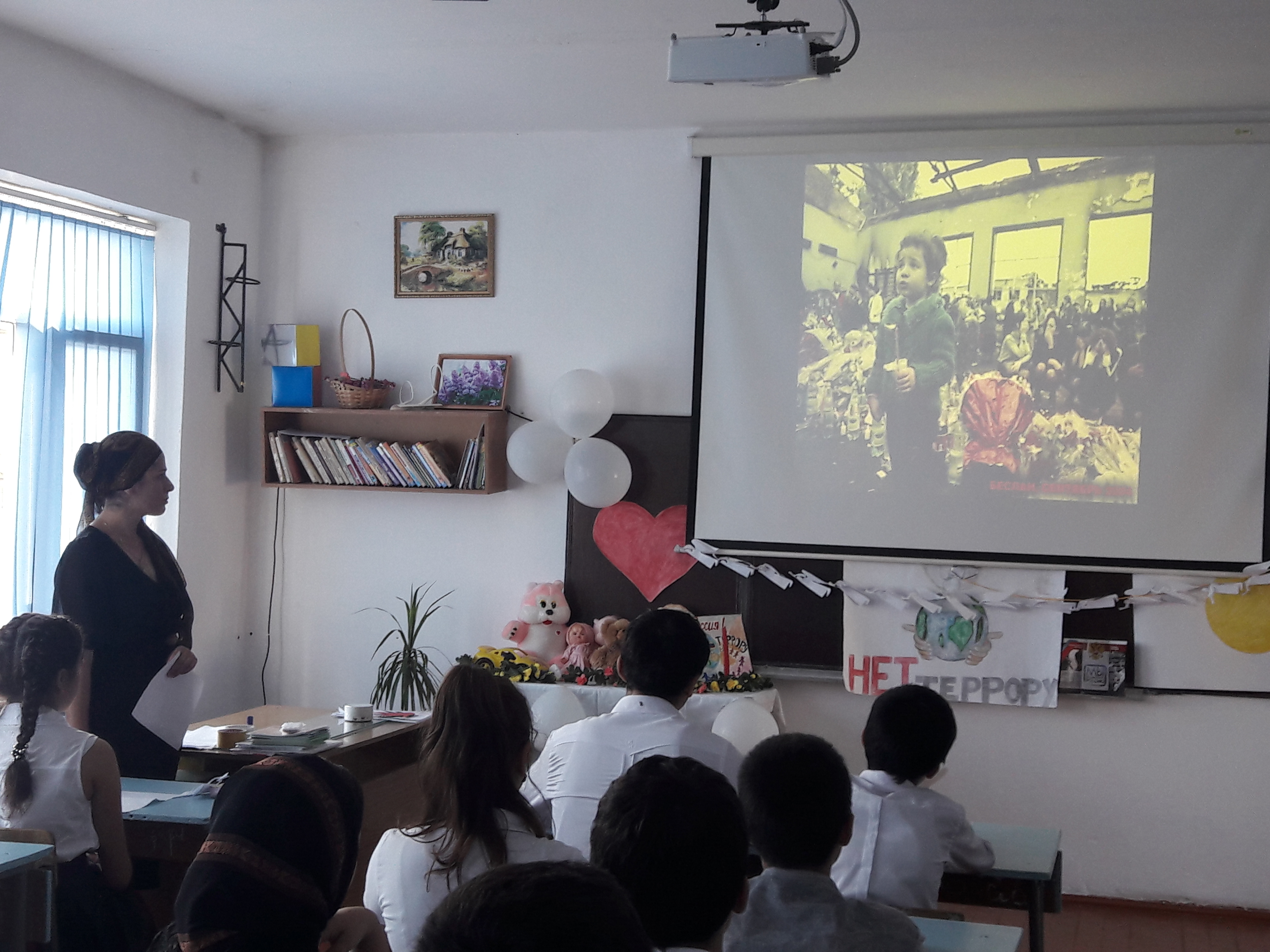 В ходе классного часа содержание учебного материала позволило эмоционально раскрыть драматизм событий в г.Беслане, связанных с захватом школы отрядом террористов. Просмотр видеосюжета позволил раскрыть пример героического поведения Олега Лоськова, который ценой своей жизни спасал детей и педагогов.