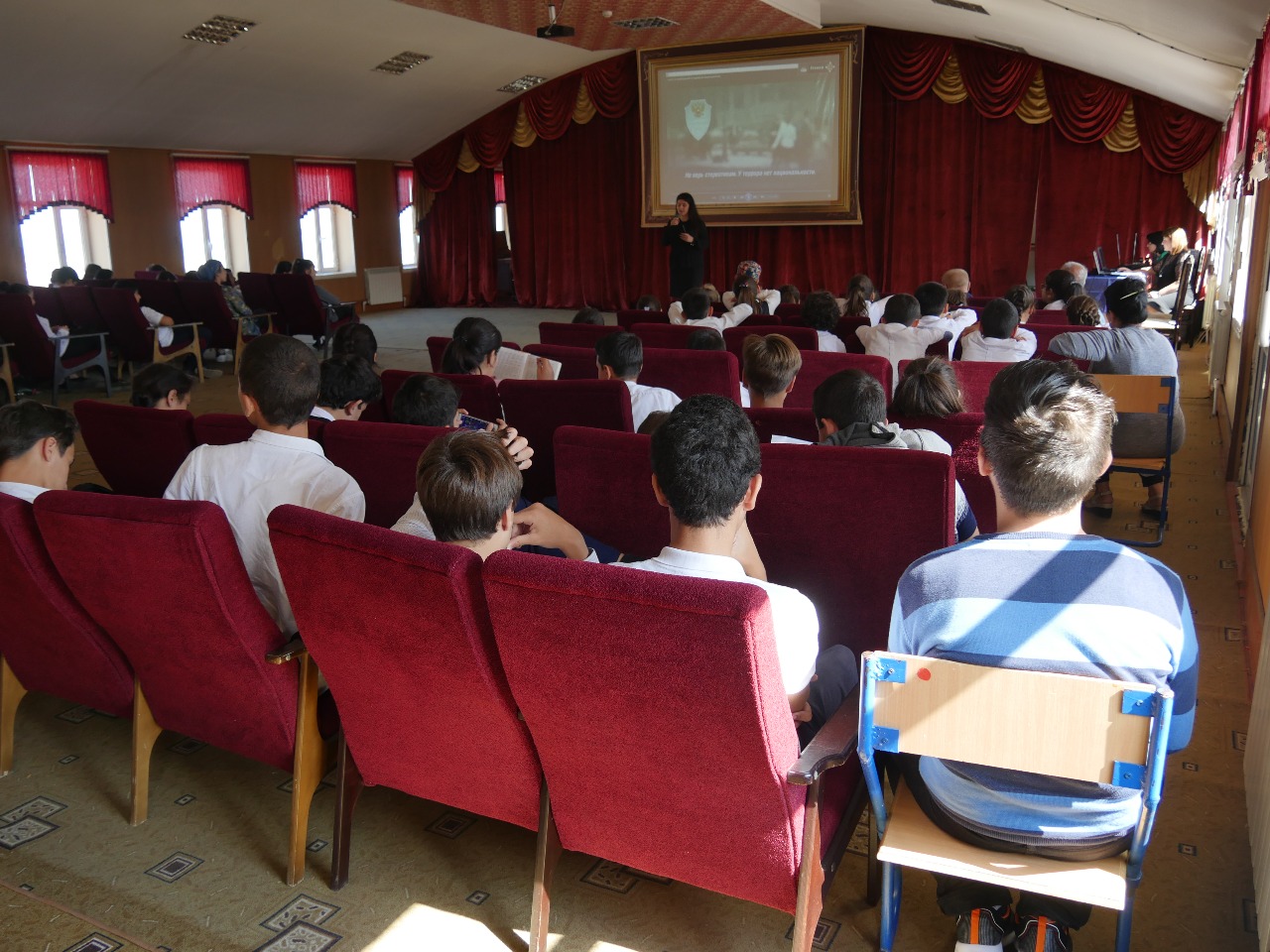 Зам. директора по ВР Абиева Д.Я. в своем выступлении отметила, что проблема экстремизма и терроризма - самая сложная проблема современности, что международный терроризм является вызовом 21 века, вызовом всему человечеству, он не имеет ни религии, ни национальности, ни границ, а все три конфессии нашего города Дербента учат добру, миру и семейным ценностям. Гости мероприятия: Магомедов М.Г. - 1 заместитель Председателя городского собрания депутатов и Ашуралиев Х. - сотрудник отдела Просвещения Муфтията РД, рассказали о необходимости уважения культурных и конфессиональных особенностей, о праве на сохранении собственной идентичности для всех народов, населяющих Российскую Федерацию.