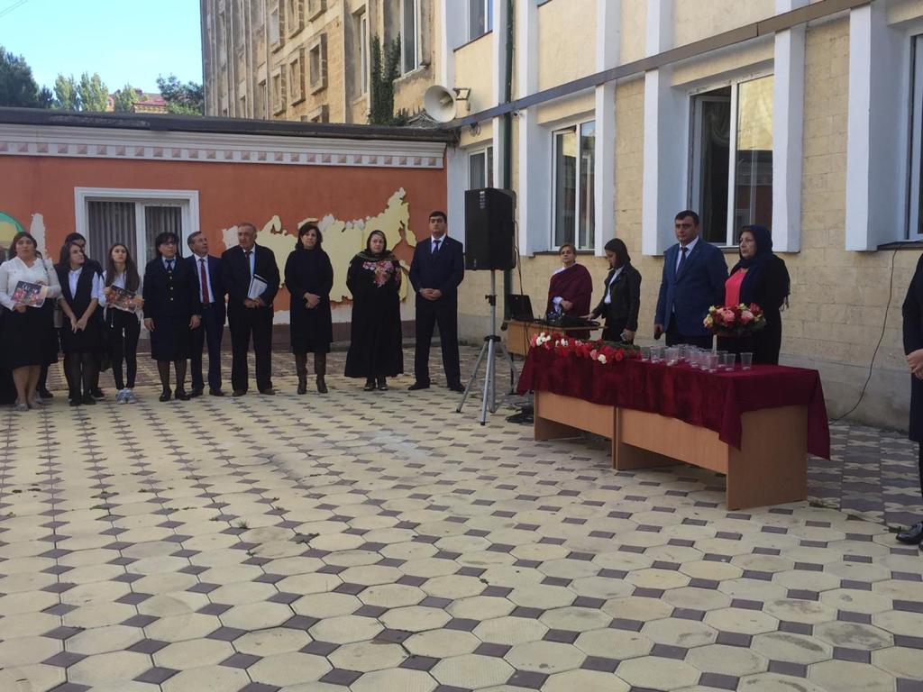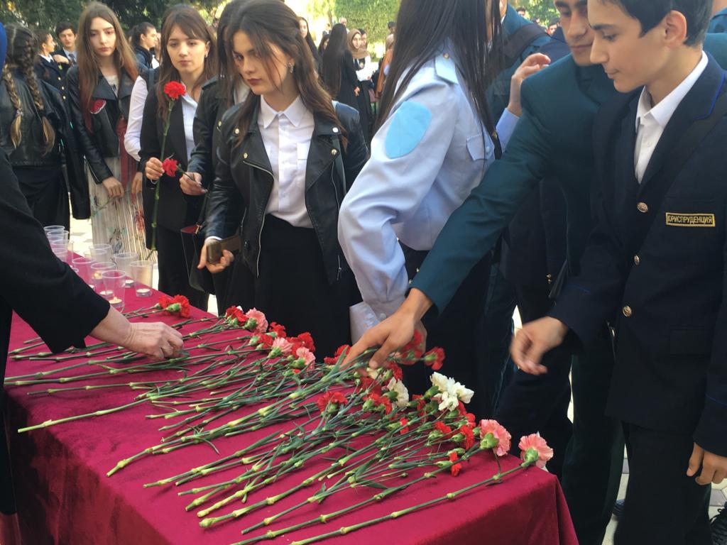 Студенты и преподавательский состав колледжа открыли своё мероприятие минутой молчания, после чего перед учащимися выступили: заместитель директора по воспитательной работе - Зухра Сефербековна, руководитель молодежного центра "Респект " - Закир Шихрагимов и преподаватель юридических дисциплин - Руслан Сергеевич.