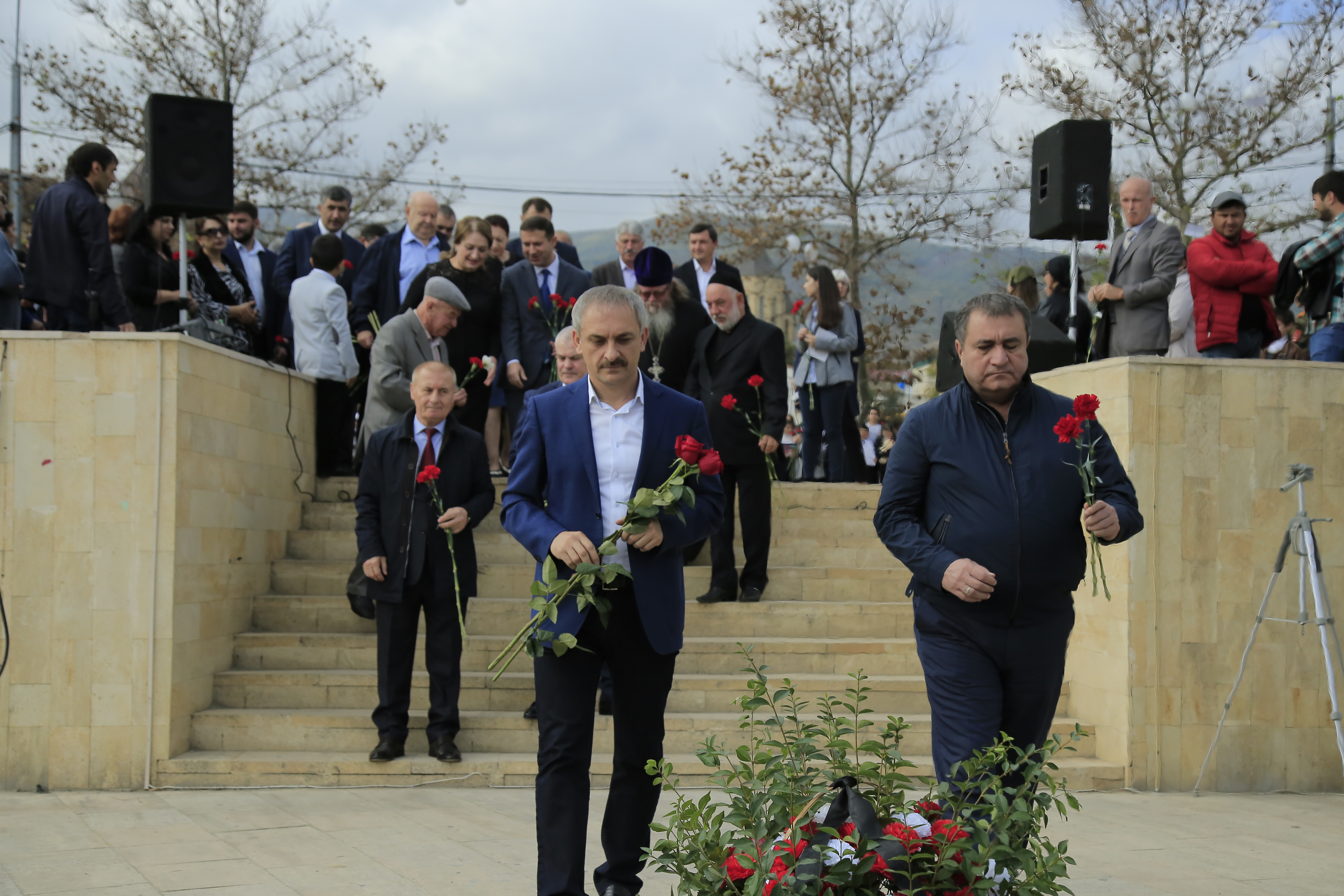 Присутствующие почтили память погибших минутой молчания и выпустили в небо сотни белых шаров. В заключение мероприятия присутствующие возложили цветы к мемориалу «Скорбящая мать».