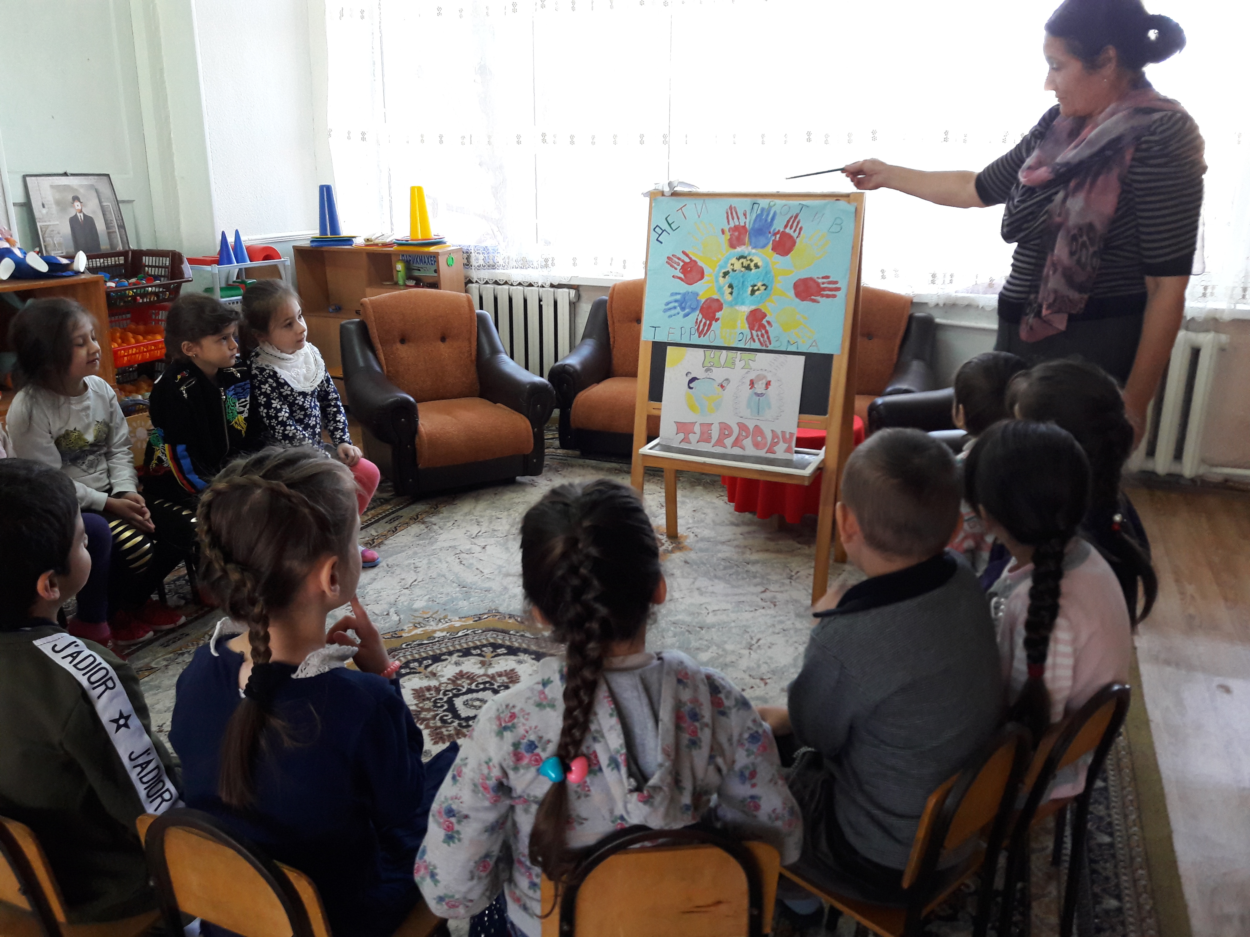 В ходе мероприятия были проведены беседы на тему террора во всех группах детского сада.
