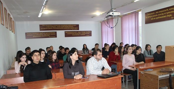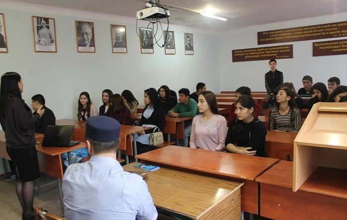 24 октября 2017 года в филиале ДГУ в г. Дербенте состоялась встреча студентов первых курсов с представителем отдела просвещения Муфтията РД по ЮТО, который провел лекцию по тематике духовно-нравственного воспитания и профилактике противодействия идеологии терроризма и экстремизма в Республике Дагестан.