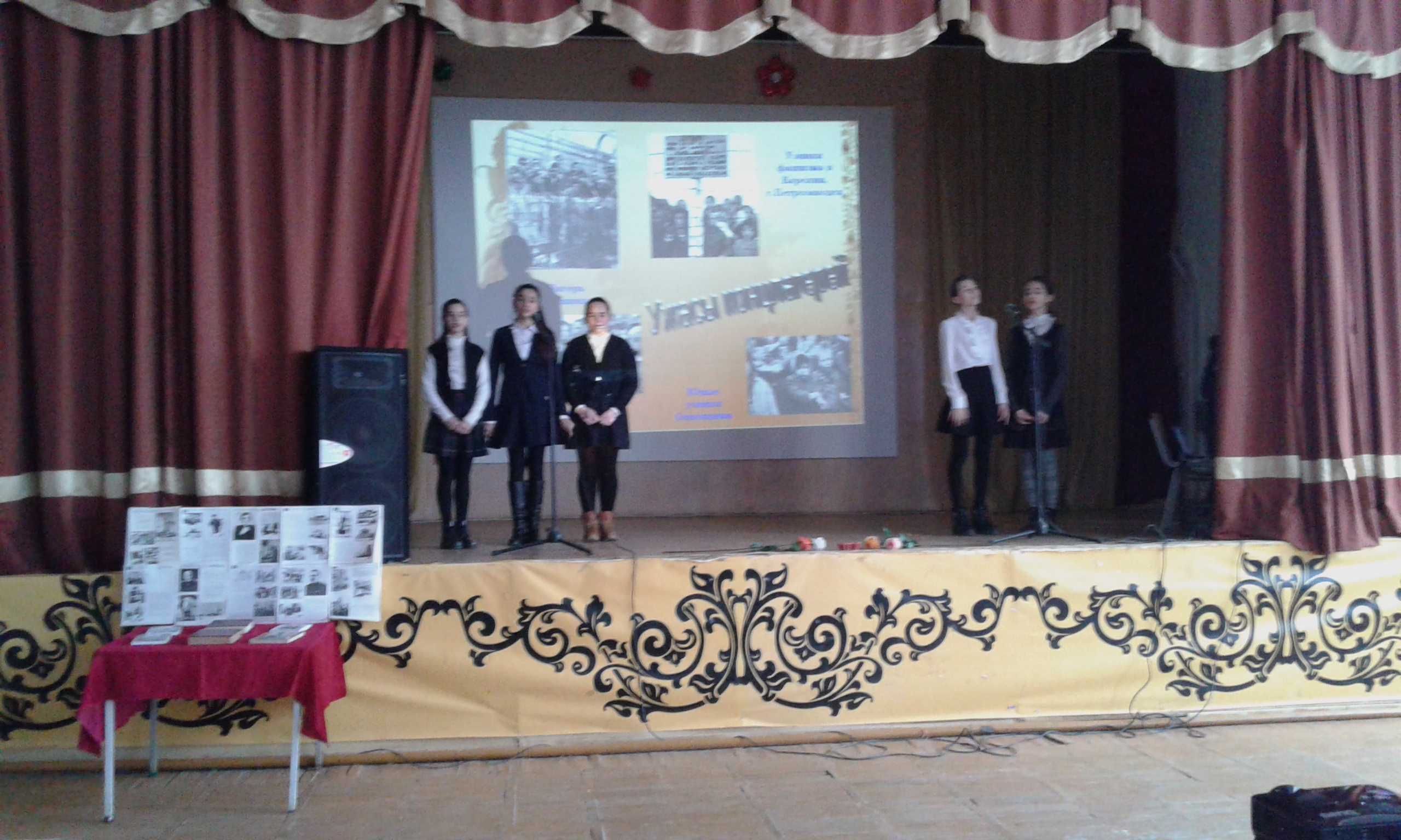 Учащиеся 7-а класса (кл.рук. Алекперова Д.К.) подготовили мероприятие в актовом зале школы , которое окунуло всех присутствующих ребят в те страшные блокадные дни, где 125 грамм хлеба в день, холодная зима, голод…. Война.