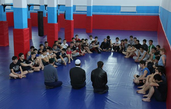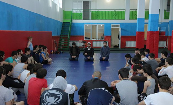 Руководитель отдела просвещения Муфтията РД по Южному территориальному округу Ахмад Гарунов посетил спортивный клуб единоборств "Иглс" ММА города Дербент, где встретился со спортсменами. На встрече приняли участие руководитель спорт клуба - Усман Гаджимусаев и сотрудник отдела просвещения Муфтията РД по г. Дербент Абдулла Ашуралиев.