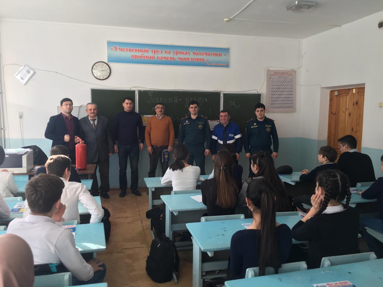 Межведомственной рабочей группой в рамках Месячника по обеспечению безопасности при использовании и содержании внутридомового и внутриквартирного газового оборудования в СОШ №19 г. Дербент был проведен открытый урок, на котором присутствовали сотрудники МКУ «Управление по делам ГО и ЧС» Исмаилов И-П.Б. и Наврузов Н.А., начальник ОНД и ПР №7 УНД и ПР ГУ МЧС России по РД – Рамазанов Р.А., руководитель отделения ВДПО по г. Дербент – Идрисов Г.В., ООО «Газпром-газораспределение Дагестан» МУ «Самурское» начальник отдела - Муртазалиев Р.А.