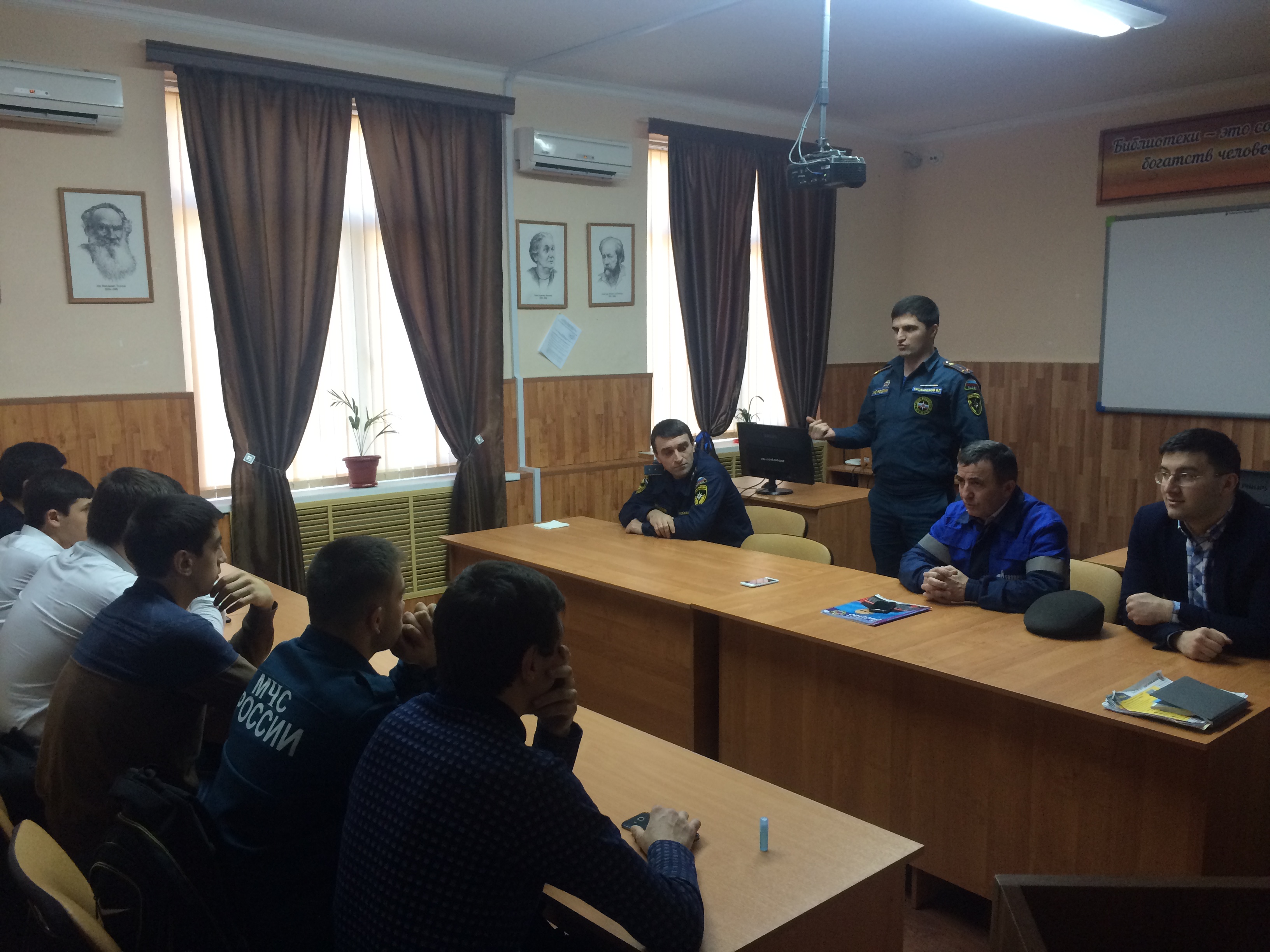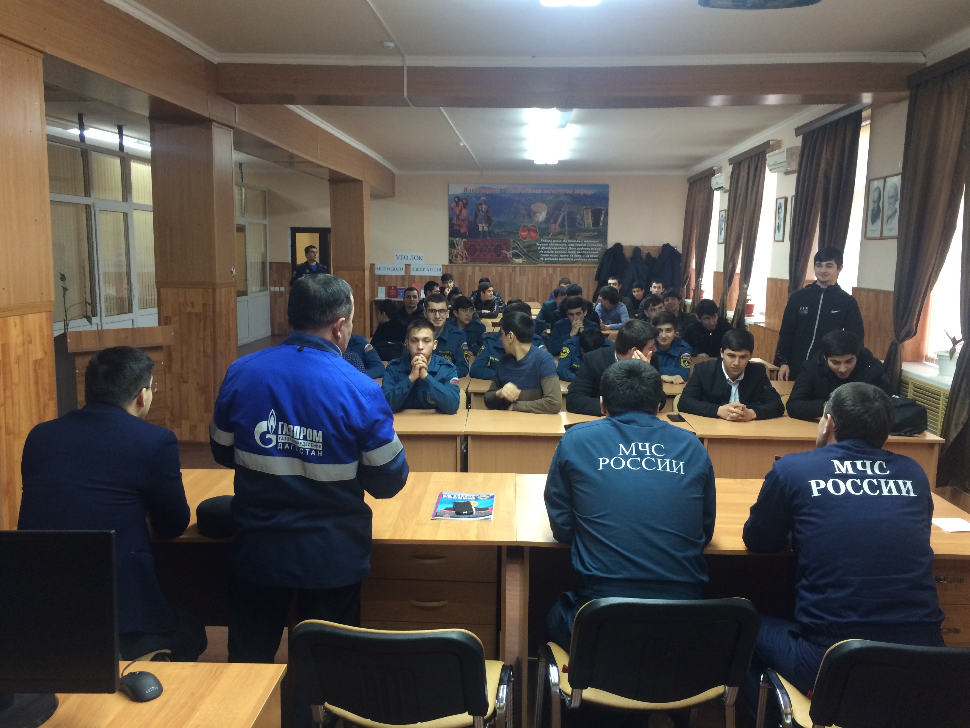 В целях повышения мер безопасности при использовании и содержании внутридомового и внутриквартирного газового оборудования в жилищном фонде городского округа г. Дербент, предупреждения аварии, несчастных случаев при пользовании газом населением и пропаганды мер безопасности пользования газом в быту в читальном зале «Колледжа экономики и права» была проведена встреча студентов колледжа, отделения ЗЧС с представителями ООО "Газпром" , МКУ "Управления по делам ГО и ЧС" по г. Дербент, ОНД и ПР№7 по г. Дербент, среди которых присутствовали Ведущие специалисты МКУ "Управления по делам ГО и ЧС"- Исмаилов Ибрагим-Паша и Наврузов Надир. Начальник отдела ООО "Газпром-газораспределение Дагестан МУ Самурское" Муртазалиев Расим А., старший дознаватель ОНД и ПР№7 и ПР ГУ МЧС России по РД Гасанбеков Р.Г., инспектор ,старший лейтенант внутренней службы Казанфаров Габиб Бахтиярович.