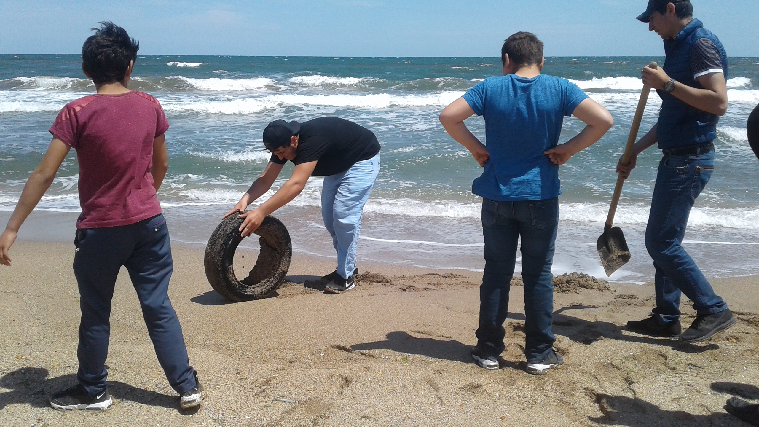 Ребята выстроились широкой полосой и прошли вдоль берега, очищая пляж от бытового мусора, автомобильных покрышек, пустых пластиковых и стеклянных бутылок, камней и сухих веток. Студенты были горды за внесенный свой личный вклад в очистке городского пляжа.