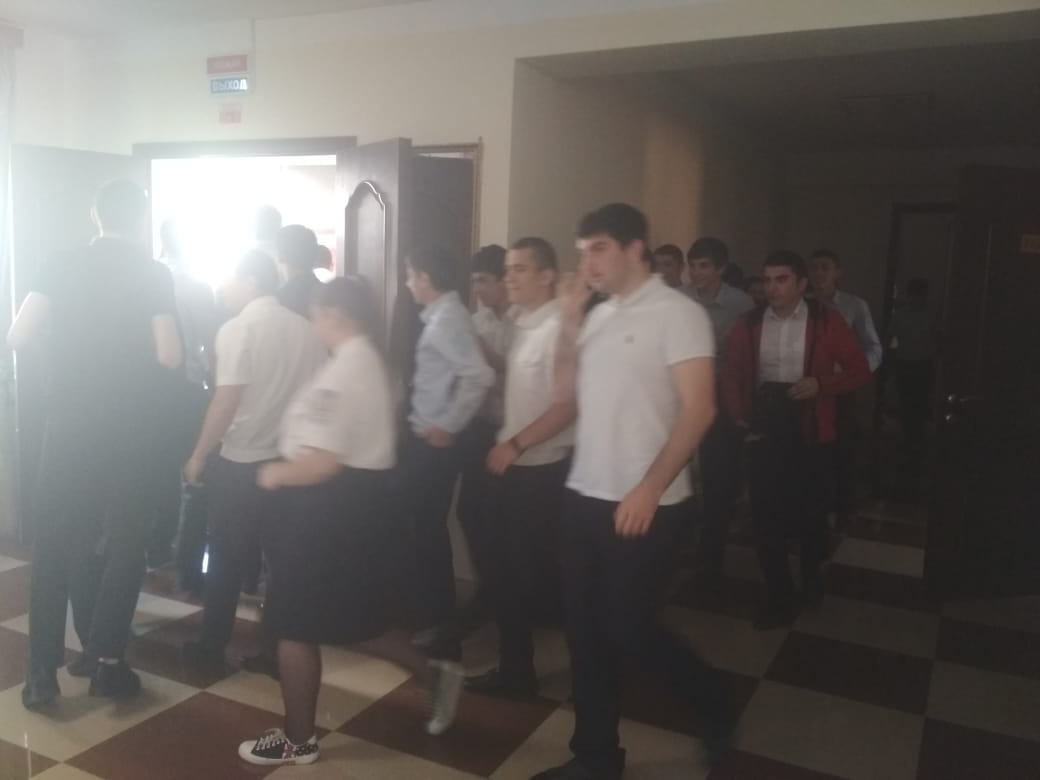 Согласно плана мероприятия была организована и проведена эвакуация из здания колледжа преподавателей и студентов. Благодаря слаженным действиям учащихся и преподавателей вывод из здания прошел на должном уровне. После вывода людей из здания колледжа, ответственные преподаватели доложили руководству колледжа о количестве студентов, эвакуированных из здания.