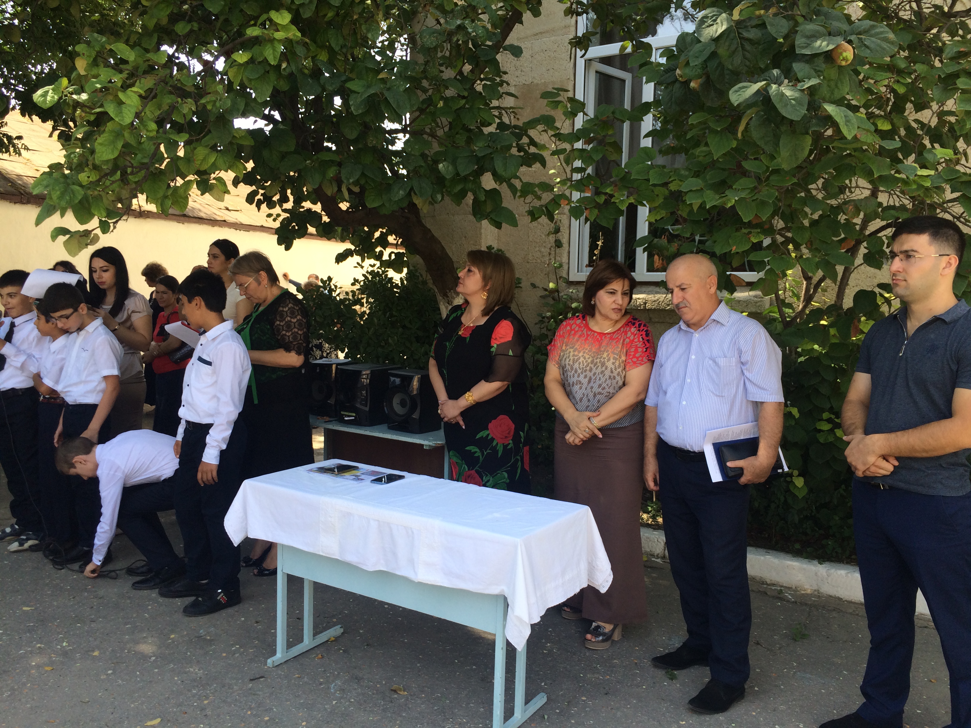 На митинге присутствовали: администрация школы, начальник отдела защиты населения и территории от ЧС - Кирхляров К.М., ведущий специалист МКУ «Управления по делам ГО и ЧС» - Ибрагимов И-П. Б., воспитанники, учителя, родители.
