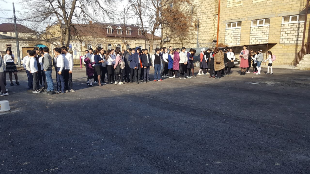 6 февраля 2020 года согласно Плану «Месячник безопасности» проведения тренировок по эвакуации населения на социально значимых объектах с массовым пребыванием людей в городском округе «город Дербент». Сотрудники МКУ «Управление по делам ГО и ЧС» г. Дербент провели мероприятия в рамках плана месячника безопасности в МБОУ СОШ №8 далее, согласно плана мероприятия была организована и проведена эвакуация из общеобразовательного учреждения преподавателей и учащихся, целью которой является выработка навыков организованной и своевременной эвакуации на случай наступления землетрясения.