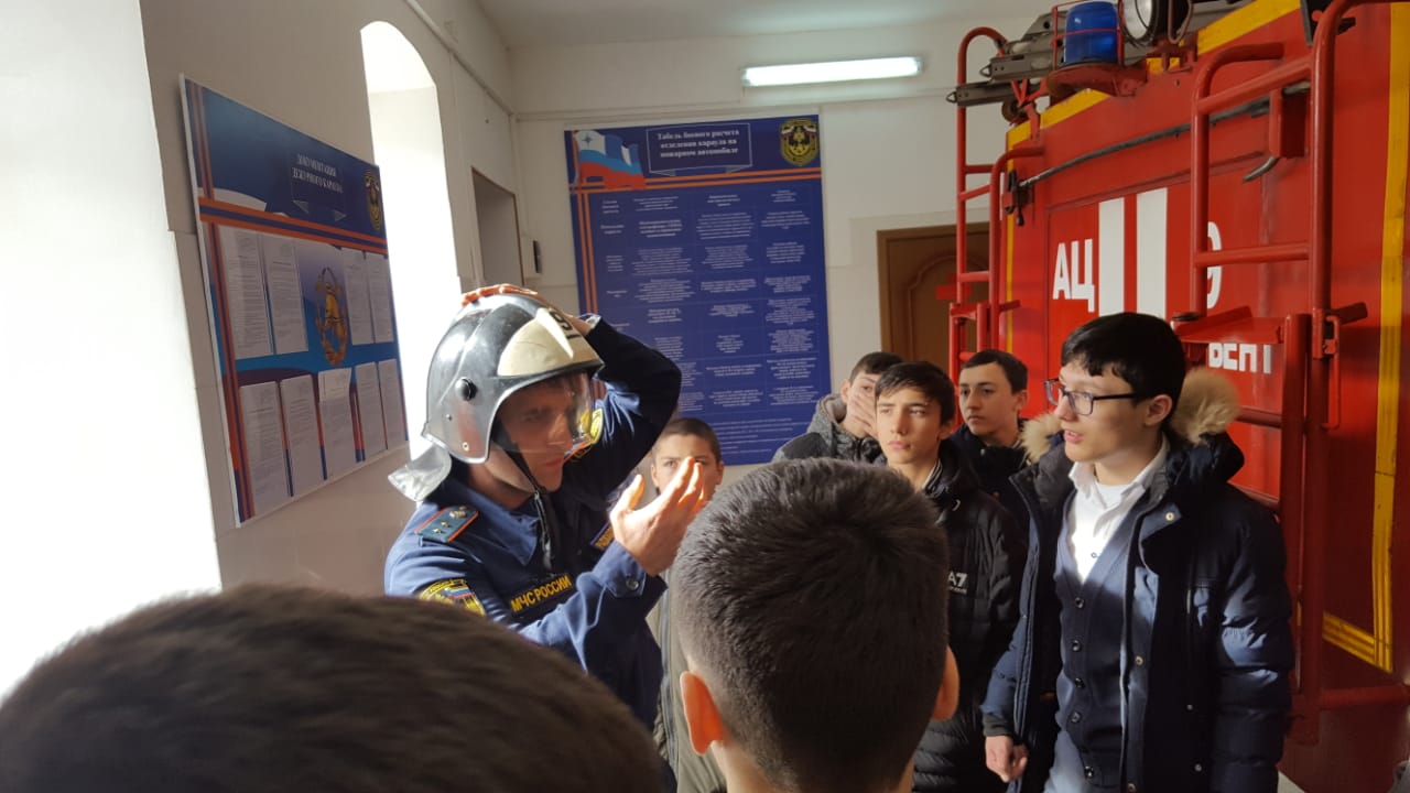 6 февраля 2020 года согласна графика в городском округе «город Дербент». Сотрудники МКУ «Управление по делам ГО и ЧС» г. Дербент совместно с ПСЧ №9 ФГКУ «Отряд ФПС по РД» провели мероприятия с учащимися 8-х классов МБУ СОШ № 16. Согласно плана мероприятия был организован и проведен открытое занятие на ПСЧ-9 на тему: «Предназначение и применение пожарной техники».