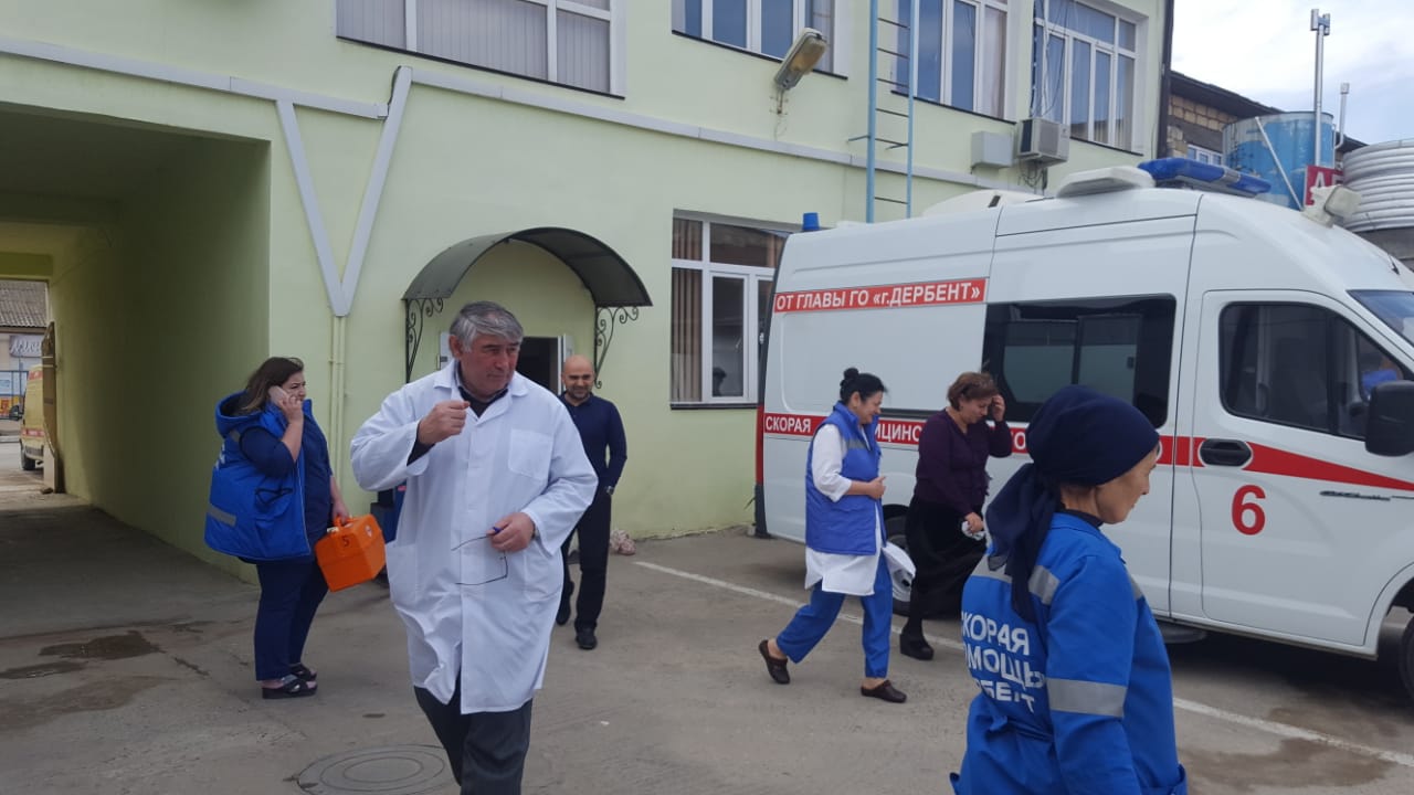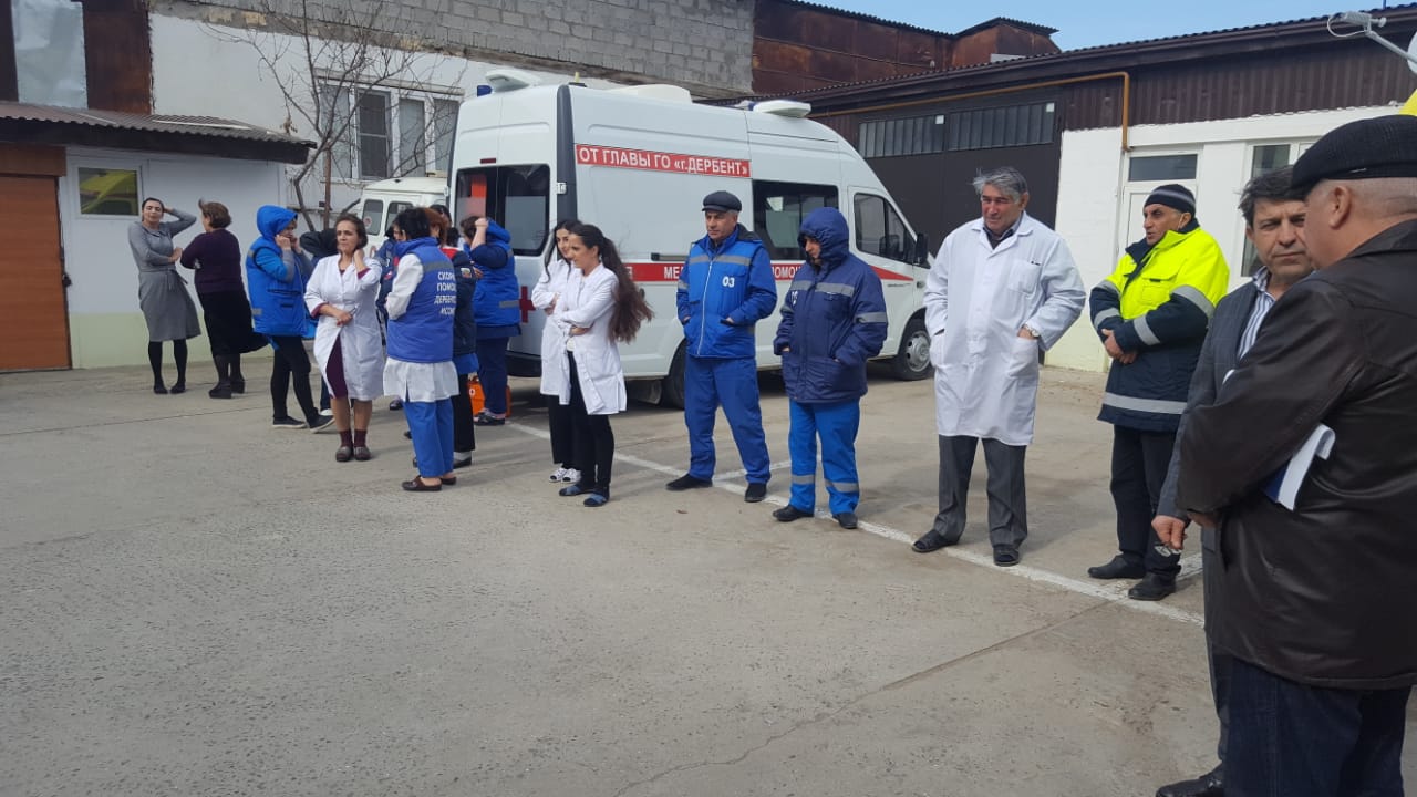 Учебная эвакуация в ГБУ РД «Дербентская МССМП»