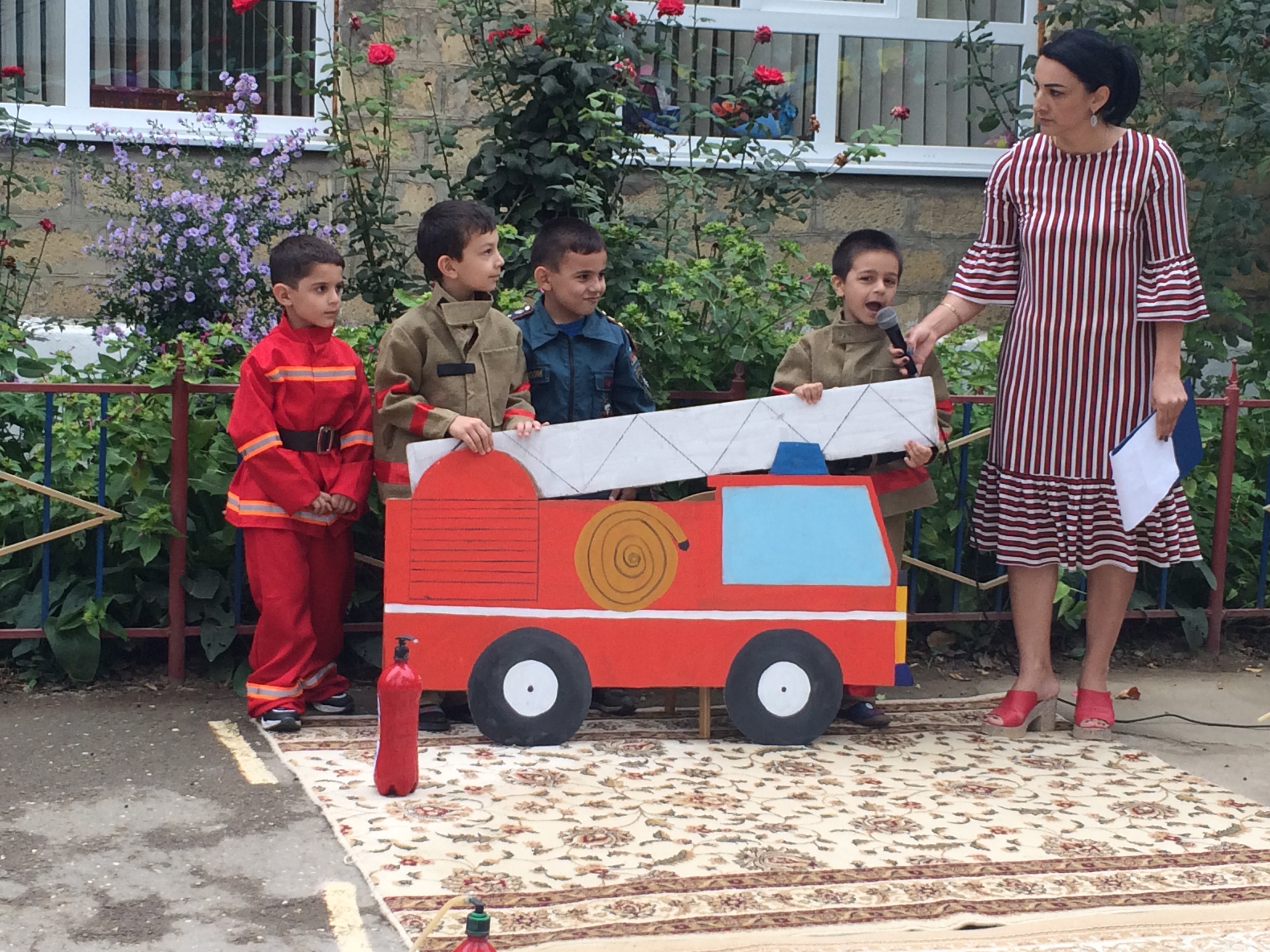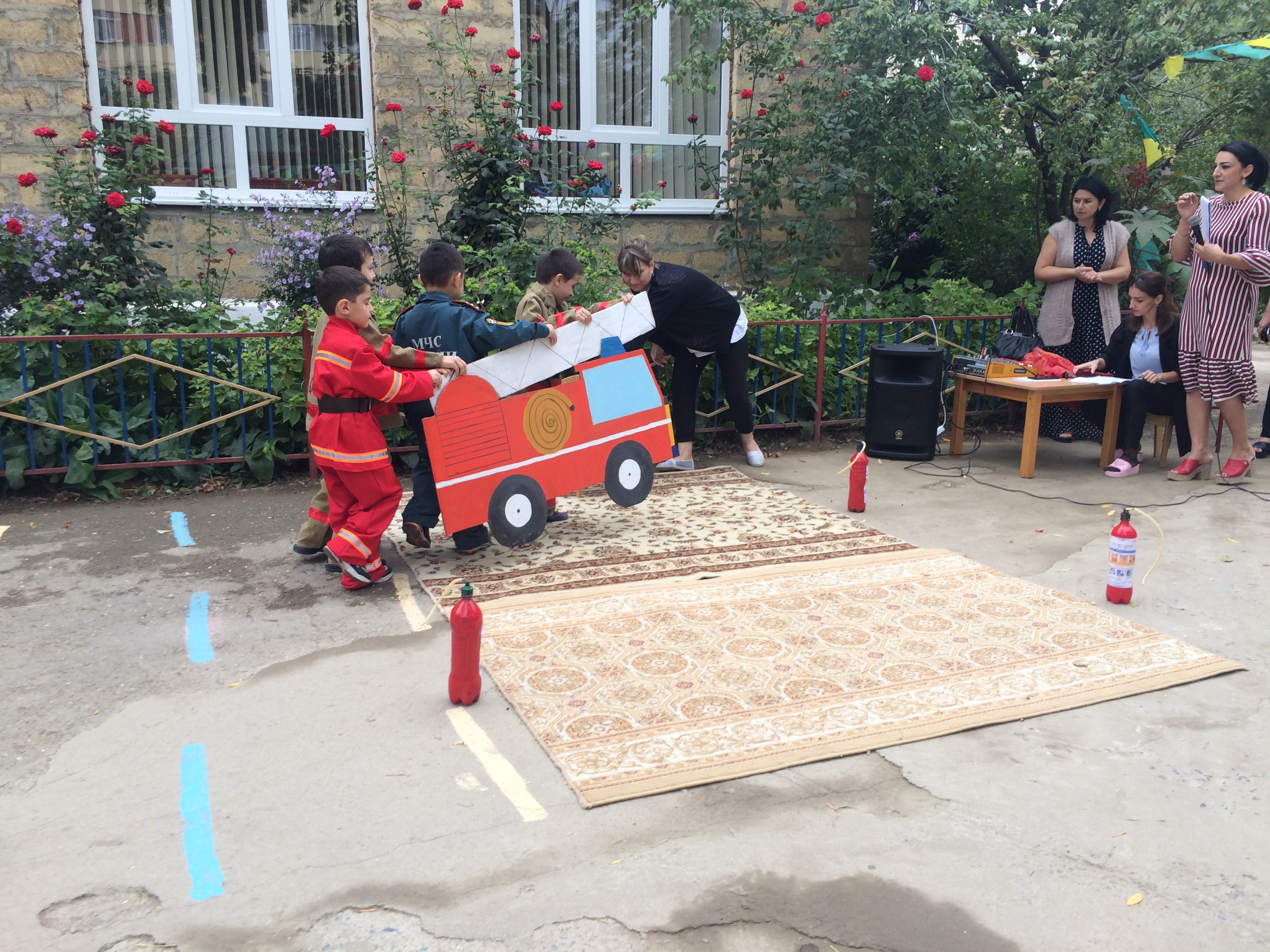 На базе МБДОУ "Незабудка" при участии специалистов МКУ "Управление по делам ГО и ЧС" г. Дербент - Исмаилова И-П.Б., Шихбабаева Р.Т., старшего мастера ГДЗС прапорщика Раджабова М.А., старшины ПСЧ-9 Рамазанова И.М. была проведена объектовая тренировка по тематике противопожарной безопасности "Огонь-друг, огонь-враг", с практической отработкой эвакуации всего состава учреждения, персонала и воспитанников ДОУ. Также было проведено концертное мероприятие по пожарной безопасности, в ходе которого детей ознакомили с правилами поведения при возгорании, пожара, говорили о важности ответственного отношения к правилам пожарной ответственности.
