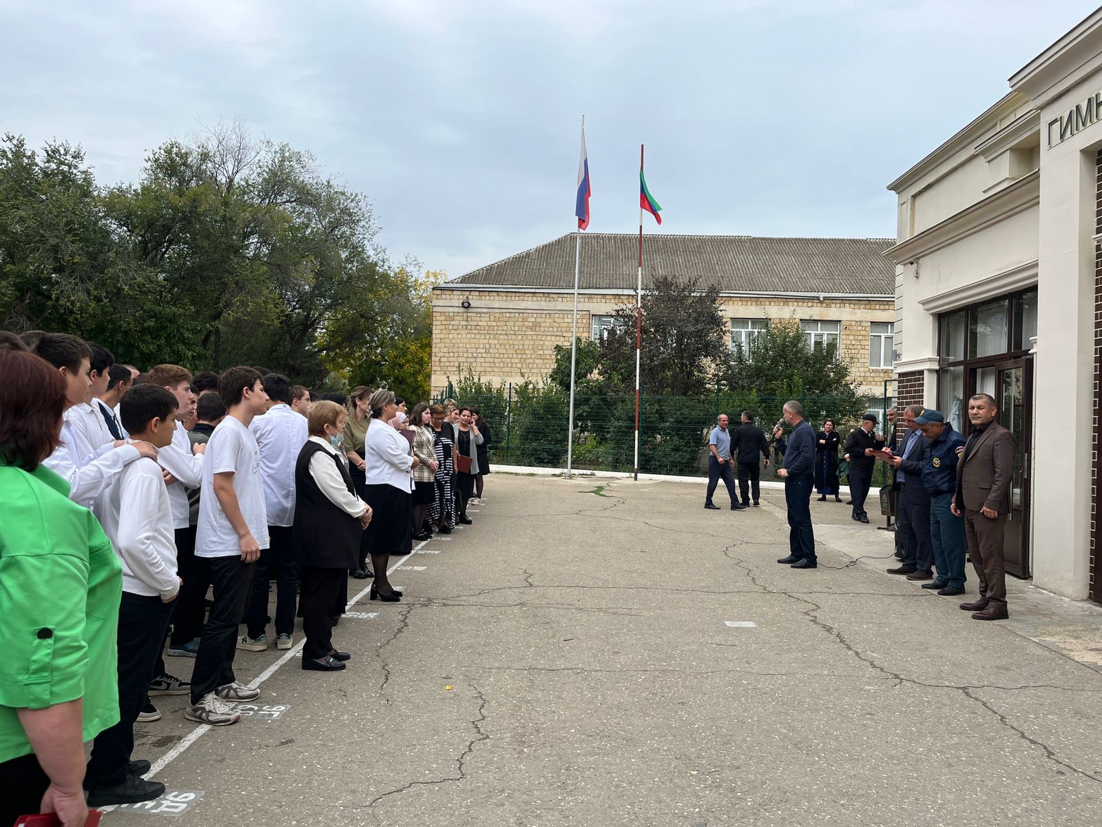 По сигналу тревожной кнопки, была организована эвакуация учащихся, преподавателей и технического персонала в безопасное место. В последующем провели открытый урок.