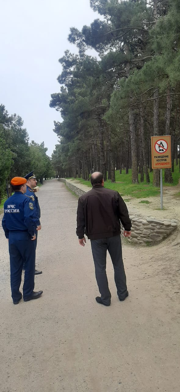 В целях профилактики пожарной безопасности на территории городского округа «город Дербент», проверки соблюдения требований пожарной безопасности в особый противопожарный период в лесопарковой зоне и территории, прилегающей к цитадели «Нарын-кала, в соответствии с распоряжением администрации городского округа «город Дербент» от 27 марта 2025 г. №24-р, по поручению заместителя главы администрации городского округа «город Дербент» Агамирзоева А.И., сотрудниками Управлением по делам ГО и ЧС г. Дербент совместно работниками ОНД и ПР №7 УНД ГУ МЧС России по РД, с участием работников Дербентского лесхоза 23 апреля 2025 г. проведено рейдовое профилактическое мероприятие на территории природного парка г. Дербент «Сосновый бор».