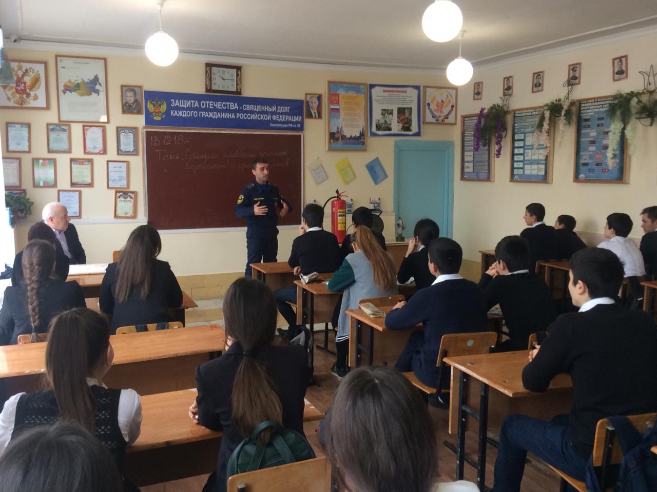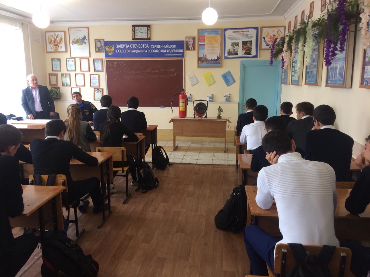 13 декабря 2018 года в МБОУ «СОШ № 21» прошел открытый урок по теме «Соблюдение требований пожарной безопасности в период новогодних праздников», на котором присутствовали учащиеся школы, начальник отдела защиты населения и территорий от ЧС МКУ «Управление по делам ГО и ЧС» Кирхлеров К.М., старший мастер ПСЧ № 9 ГУ МЧС России по РД Раджабов М.А.